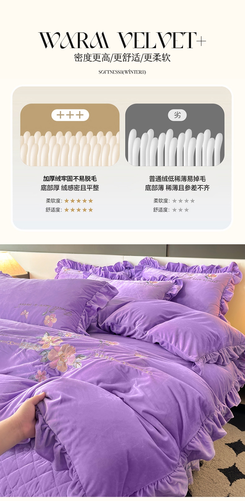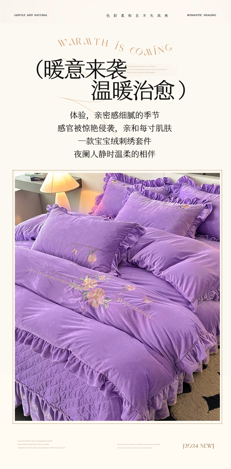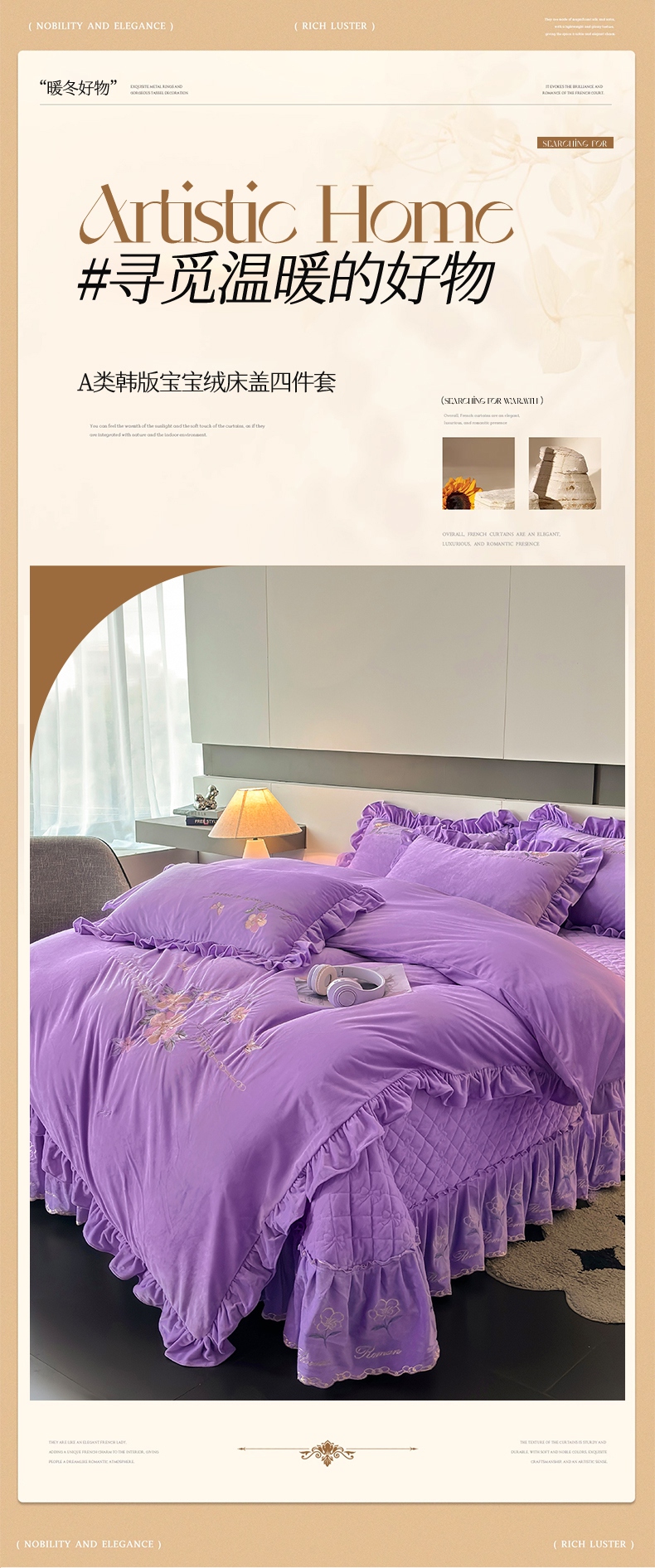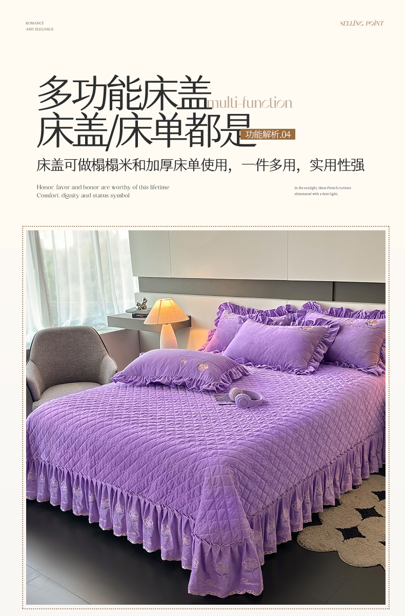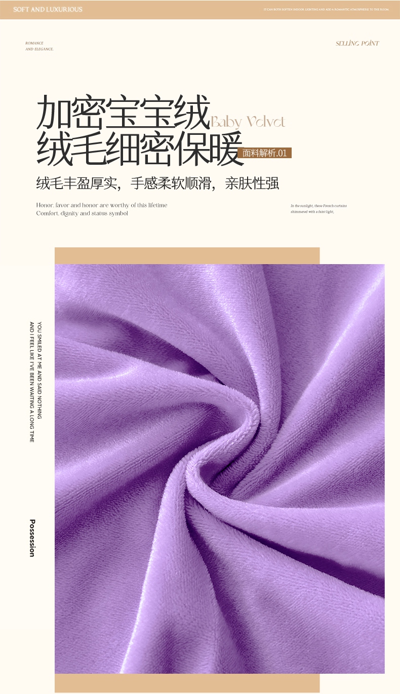 当前位置: 91家纺网 > 商品网购 > 床品套件 > 四件套 > 宝宝绒四件套 > 2024新品A类依恋宝宝绒韩版四件套 浪漫紫