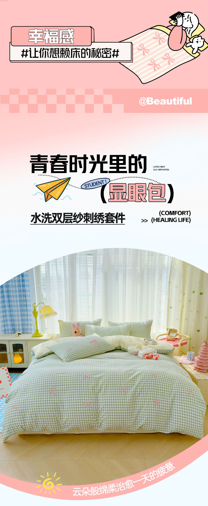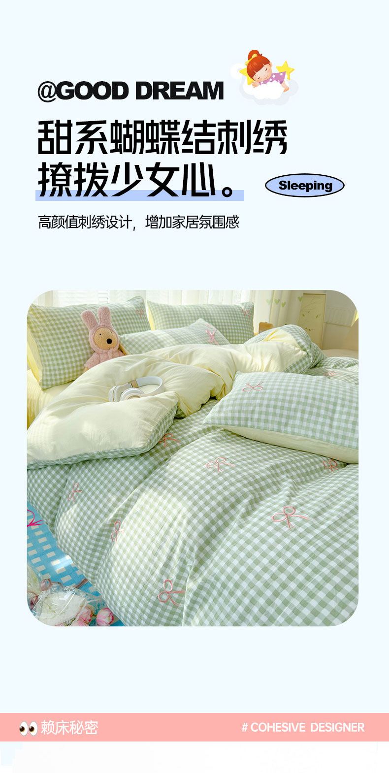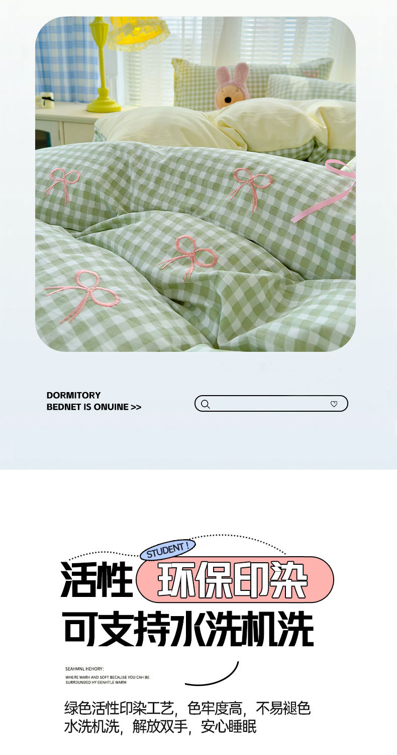 当前位置: 91家纺网 > 商品网购 > 床品套件 > 四件套 > 其它四件套 > 2025新款A类水洗双层纱蝴蝶结刺绣三件套四件套-成人床 蝴蝶结刺绣-薄荷绿格拼奶油黄