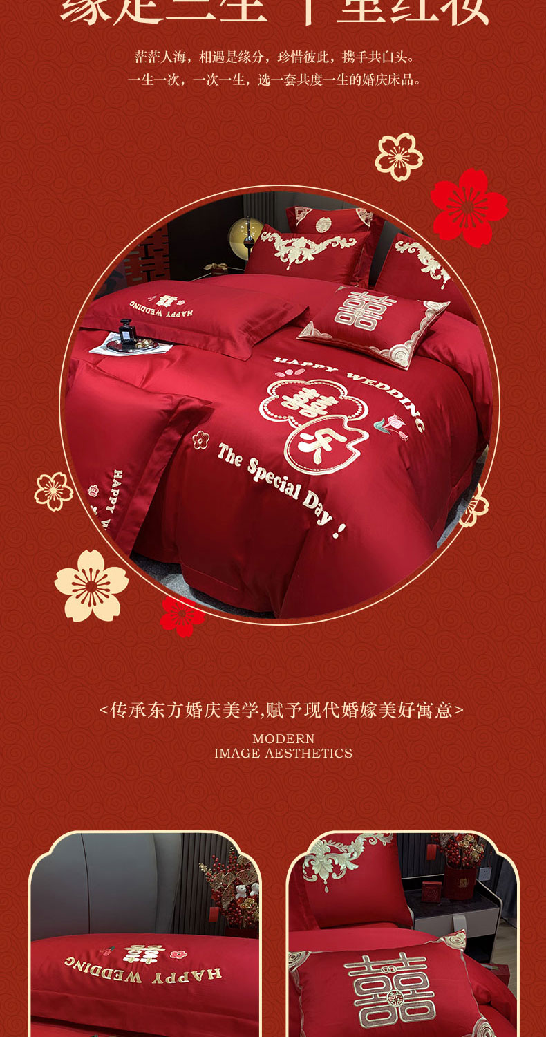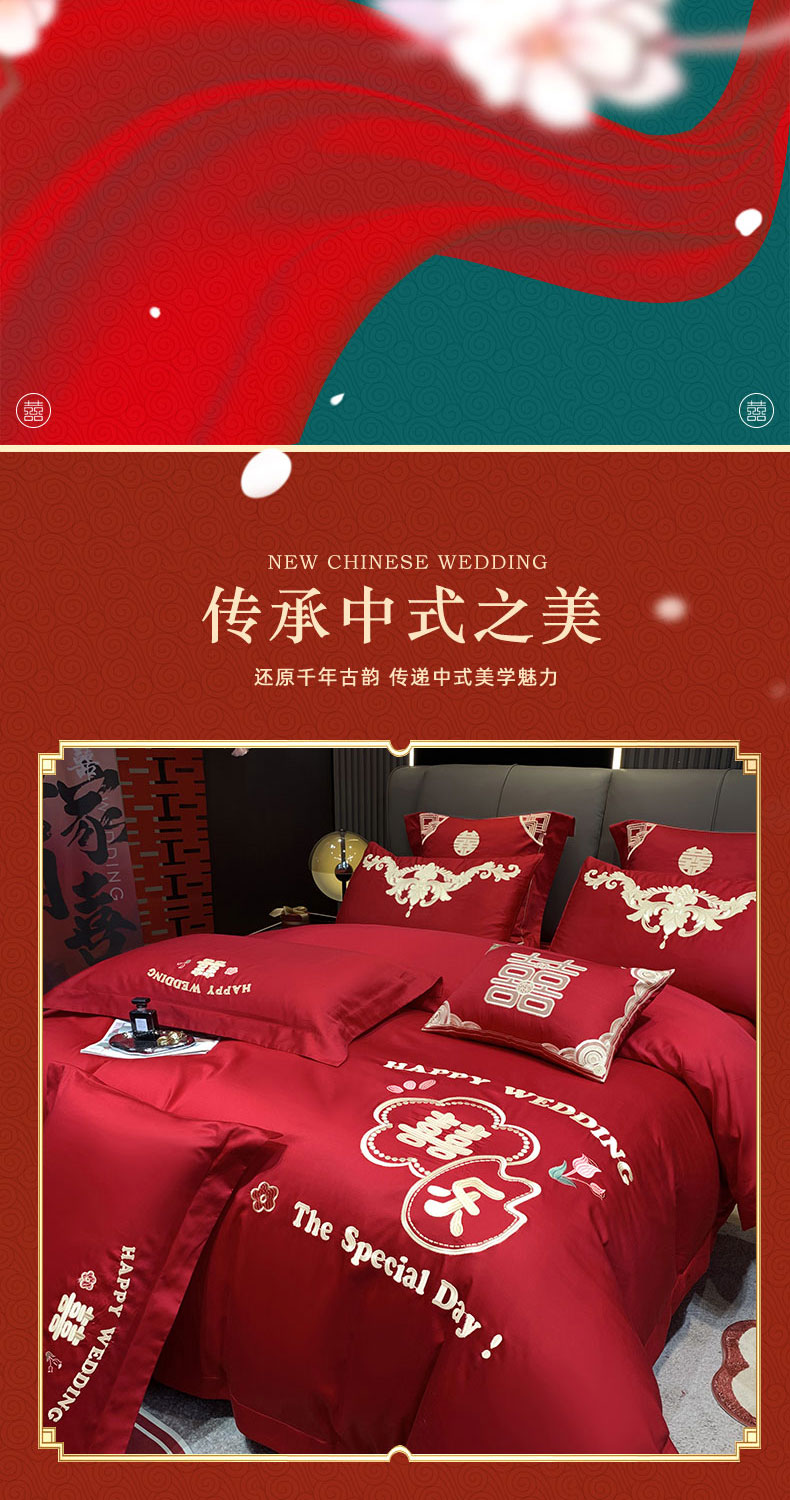 (总)用心 2024新款亲肤加厚磨毛新中式婚庆四件套多件套