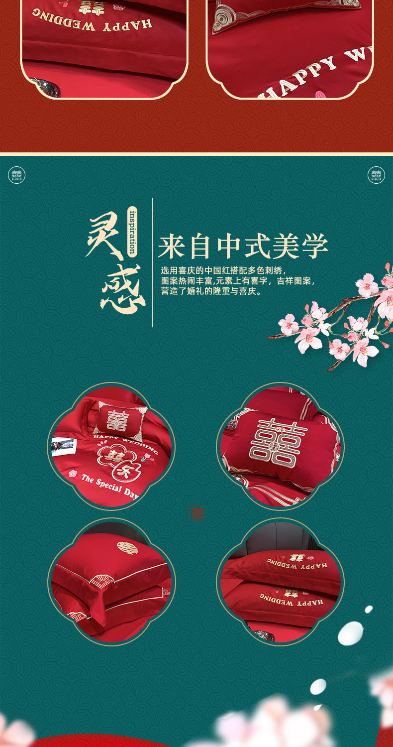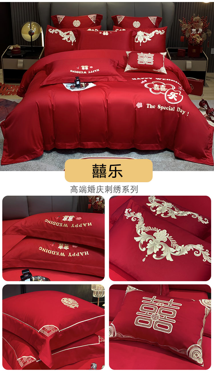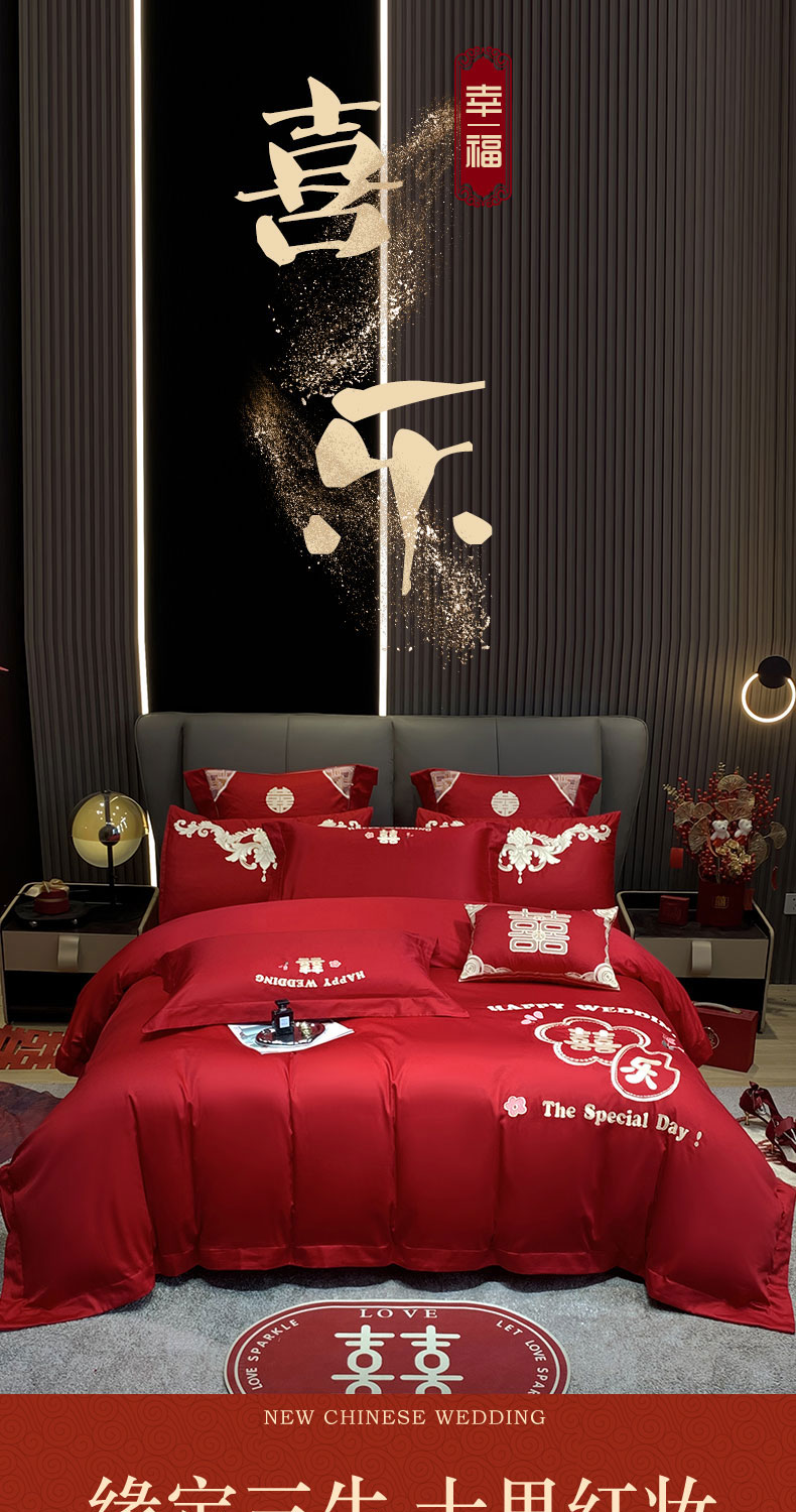 (总)用心 2026年新款双面长绒棉提花婚庆刺绣四件套,喜上喜,禧爱,吉祥