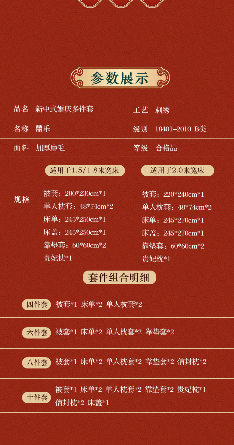 商品名称:(总)用心 2024新款亲肤加厚磨毛新中式婚庆四件套多件套