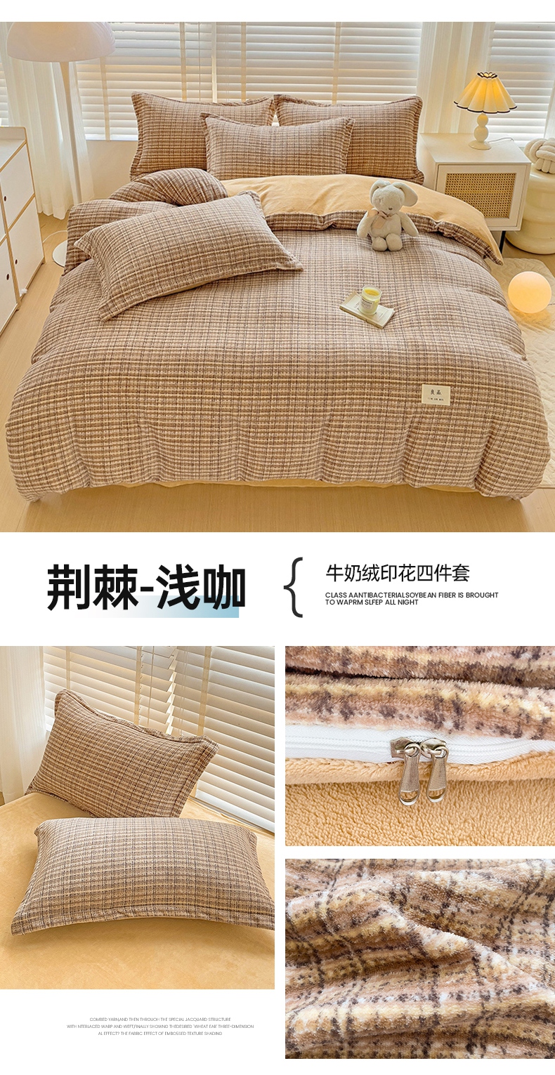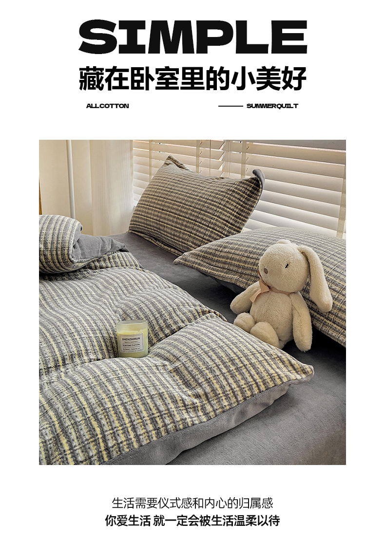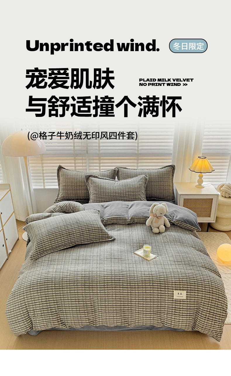 当前位置: 91家纺网 > 商品网购 > 床品套件 > 四件套 > 牛奶绒四件套 > 简一 2025新款牛奶绒无印风ins风方格系列-四件套 小香风荆棘-浅灰