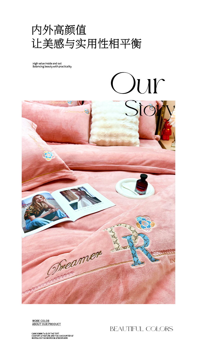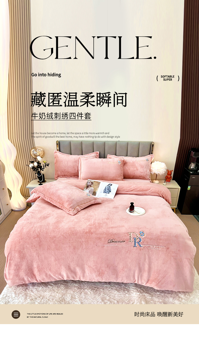 商品名称:鑫利来家纺 2024新款牛奶绒四件套绣花加厚牛奶绒保暖四件套 可可-粉玉