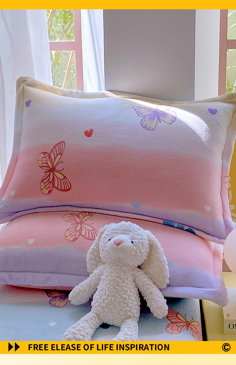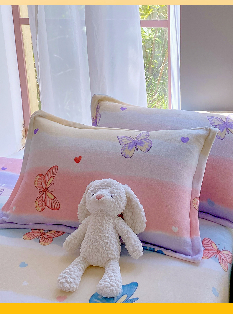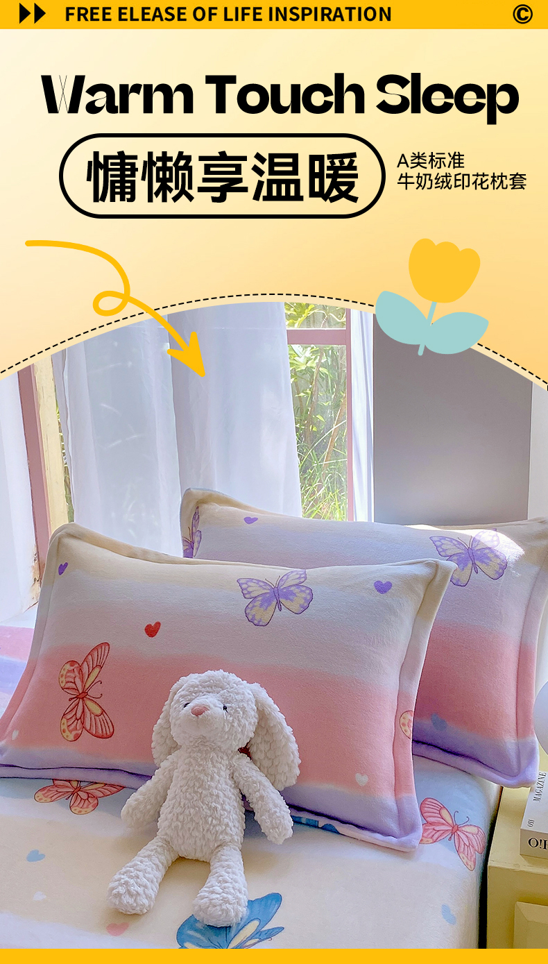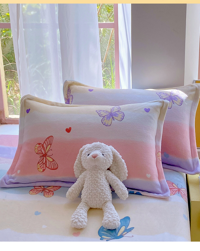 凯儿家纺 2024新款A类牛奶绒印花枕套 蝴蝶花谷
