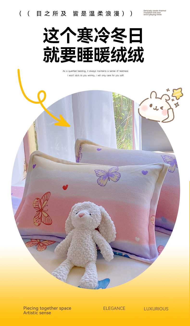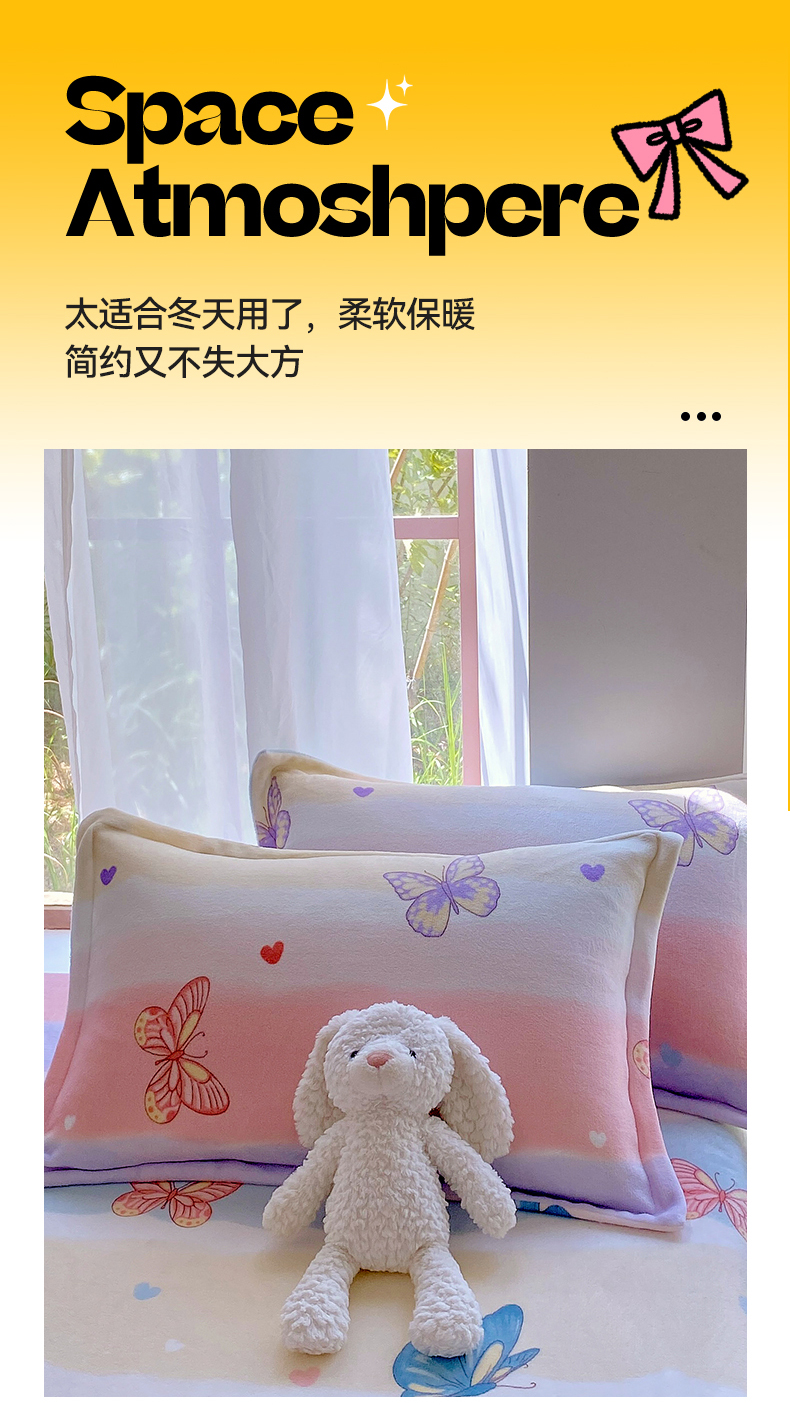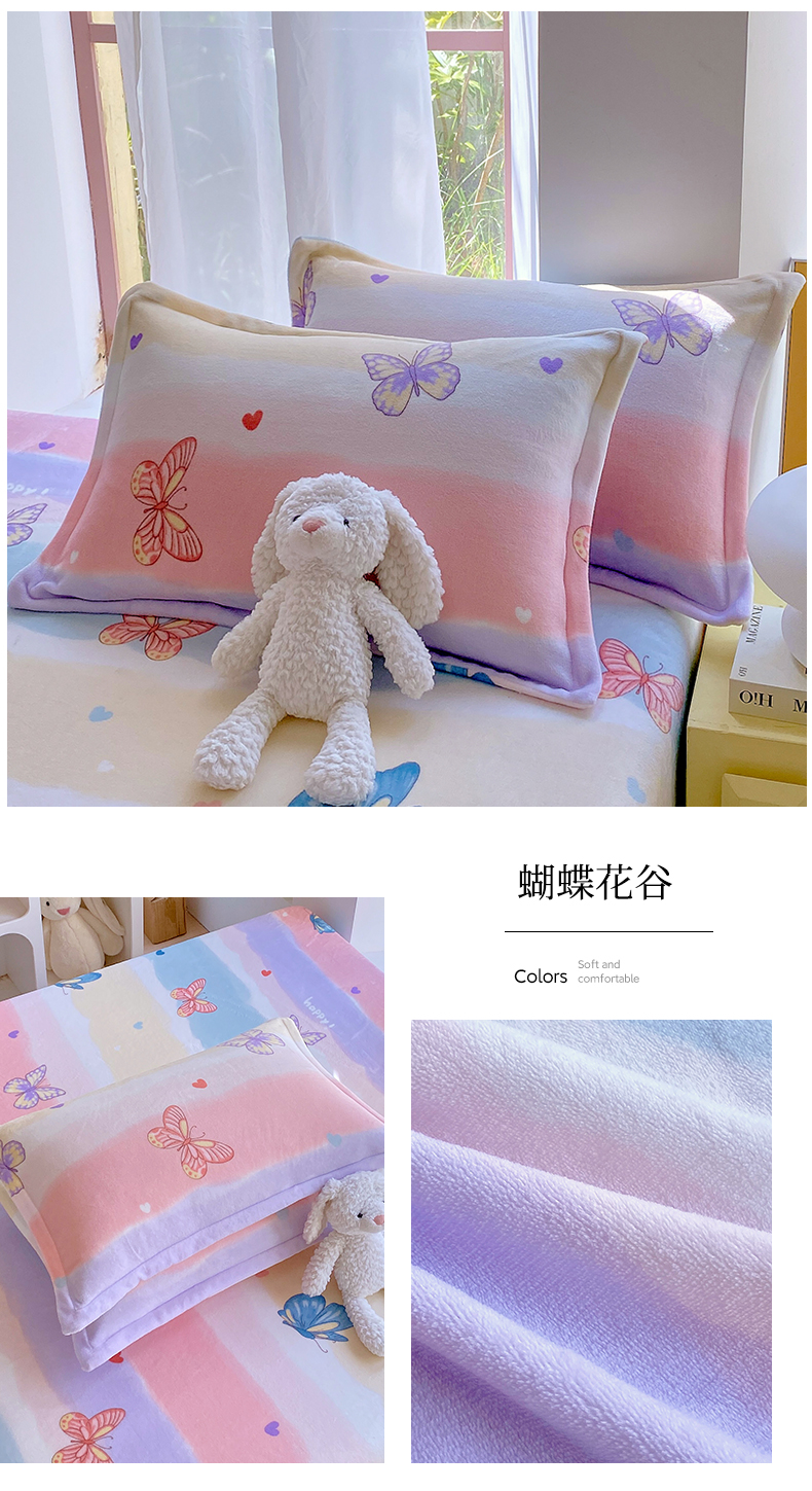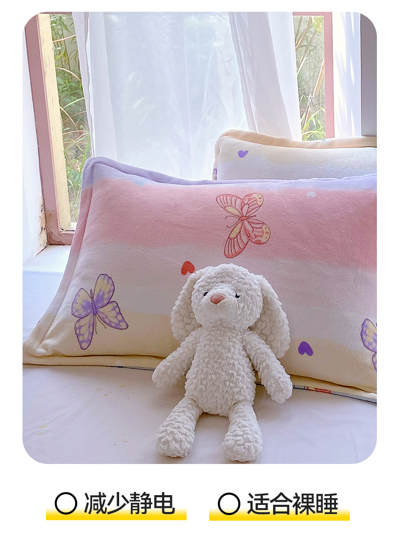 商品名称:凯儿家纺 2024新款A类牛奶绒印花枕套 蝴蝶花谷