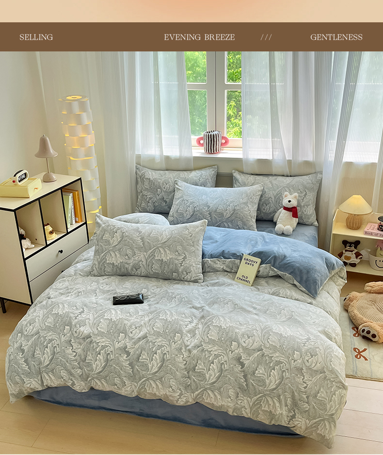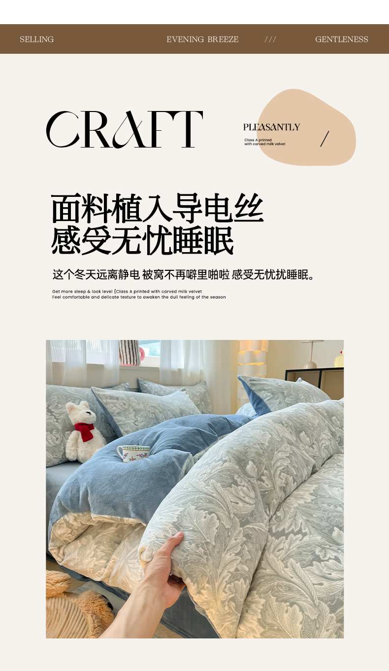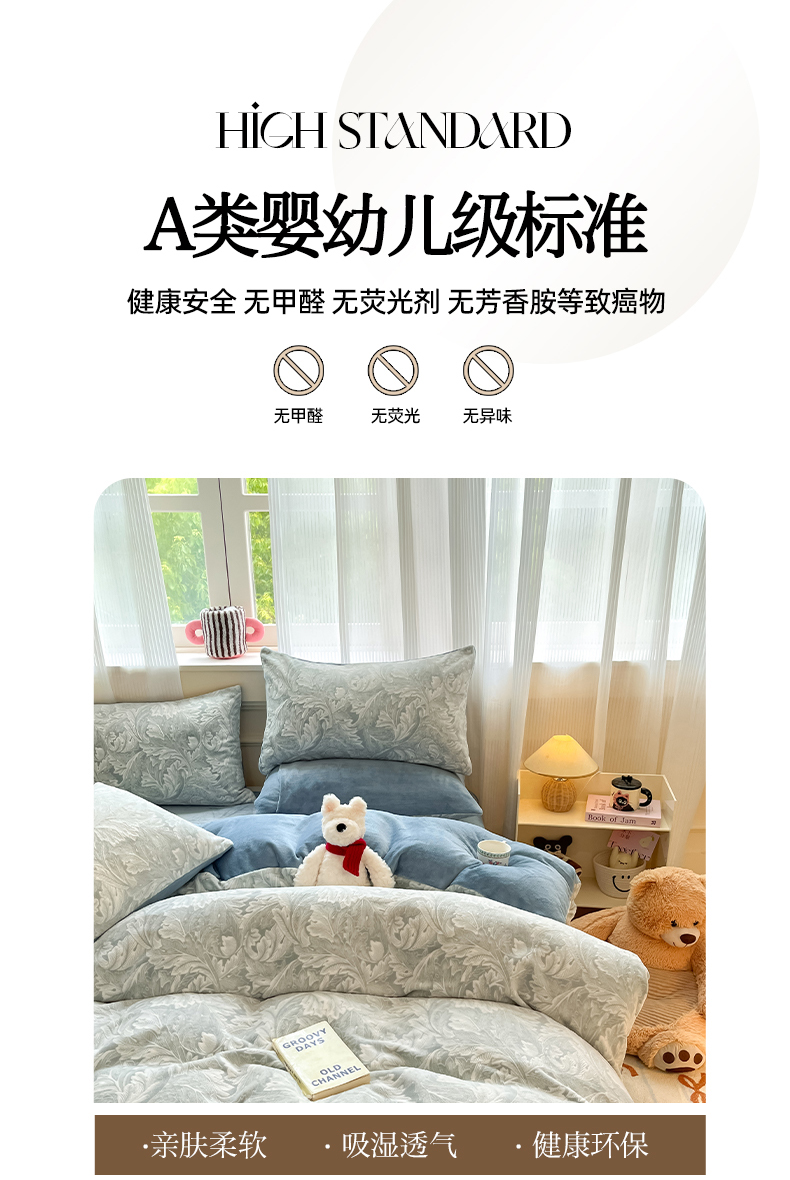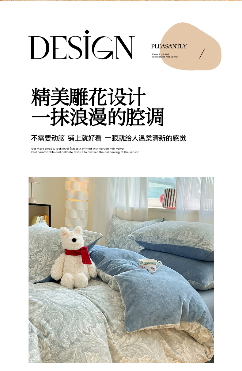 (总)莱茵家居 2025新款高克重牛奶绒烂花四件套,眠语-粉,眠语-蓝,暖格-粉,暖格-咖,暖格-蓝