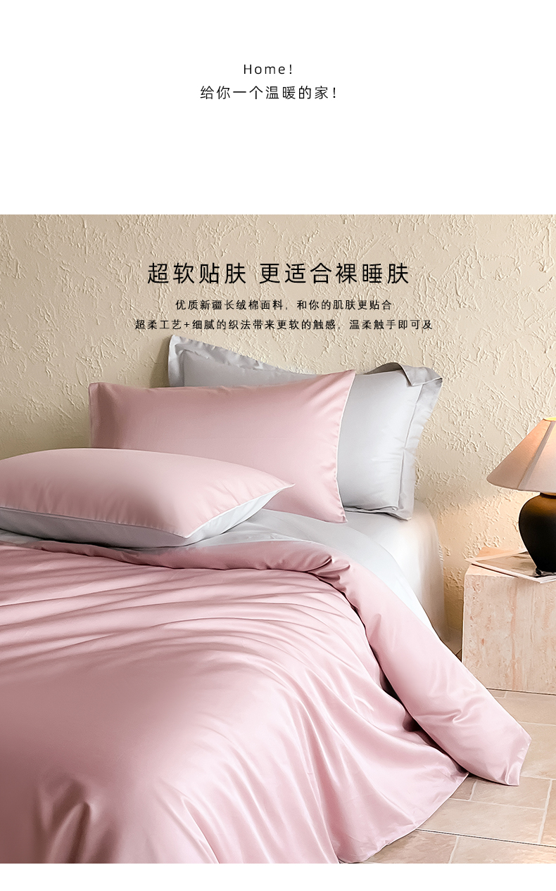 商品名称:猪先生 2024新款A类全棉高支高密纯棉单被套 清新粉+藕灰