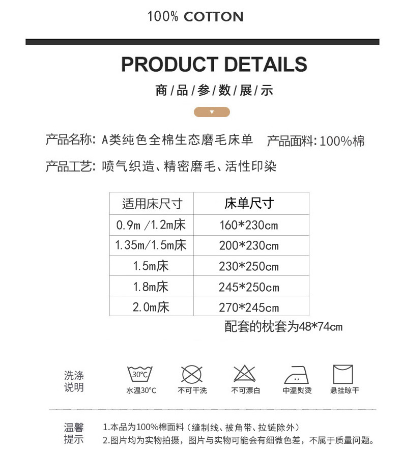 商品名称:晶缦家纺 2024新款全棉13376纯色喷气全棉磨毛单品床单 暖芸馨-本白色