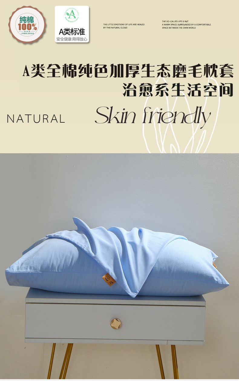 商品名称:晶缦家纺 2024新款全棉13376纯色喷气全棉磨毛单品枕套 暖芸馨-淡天兰