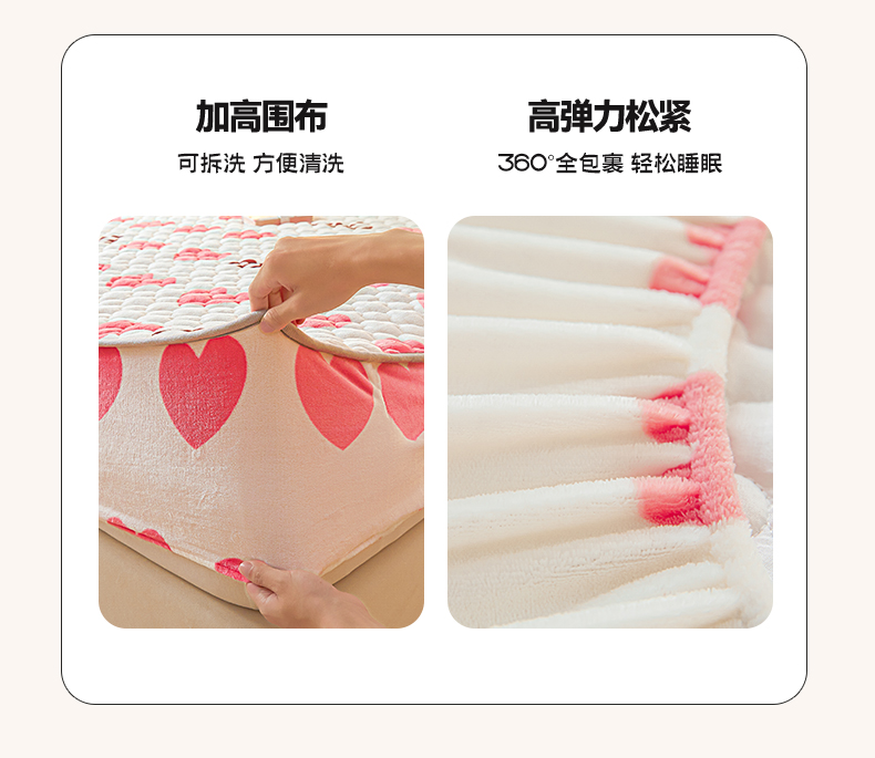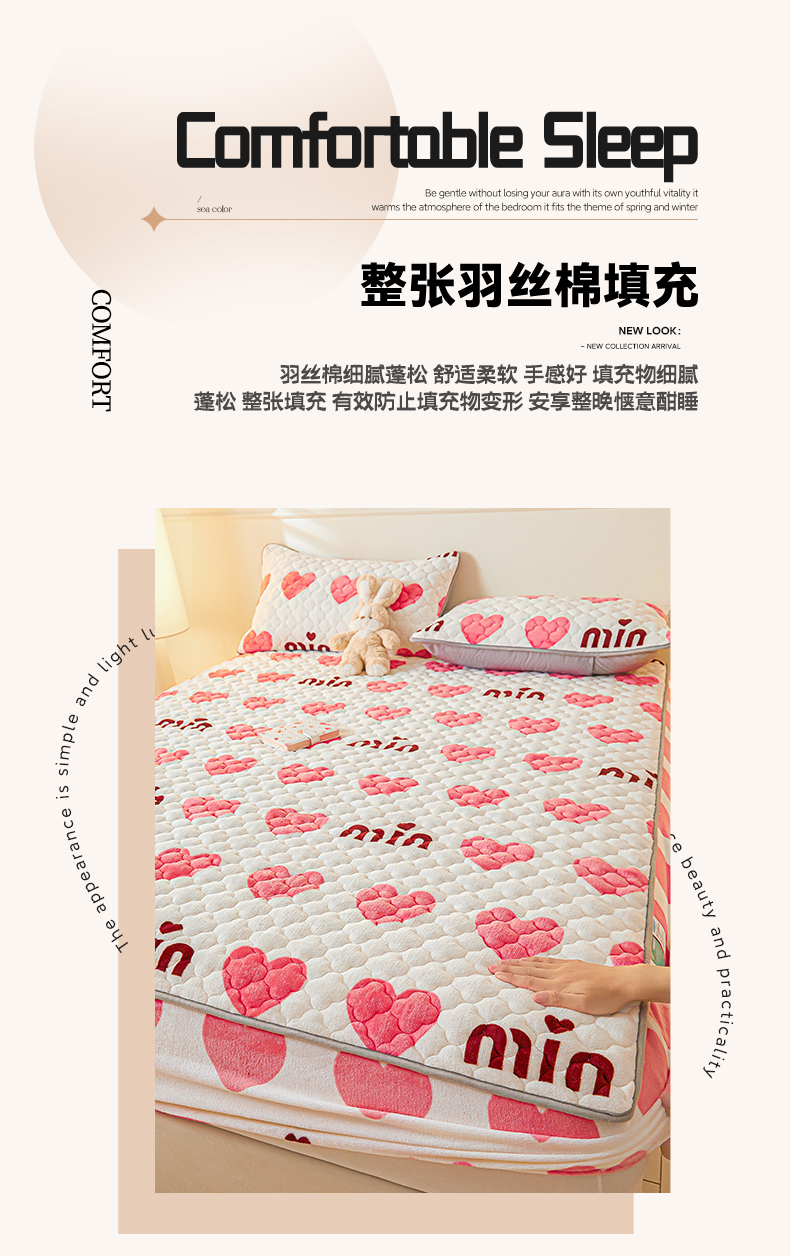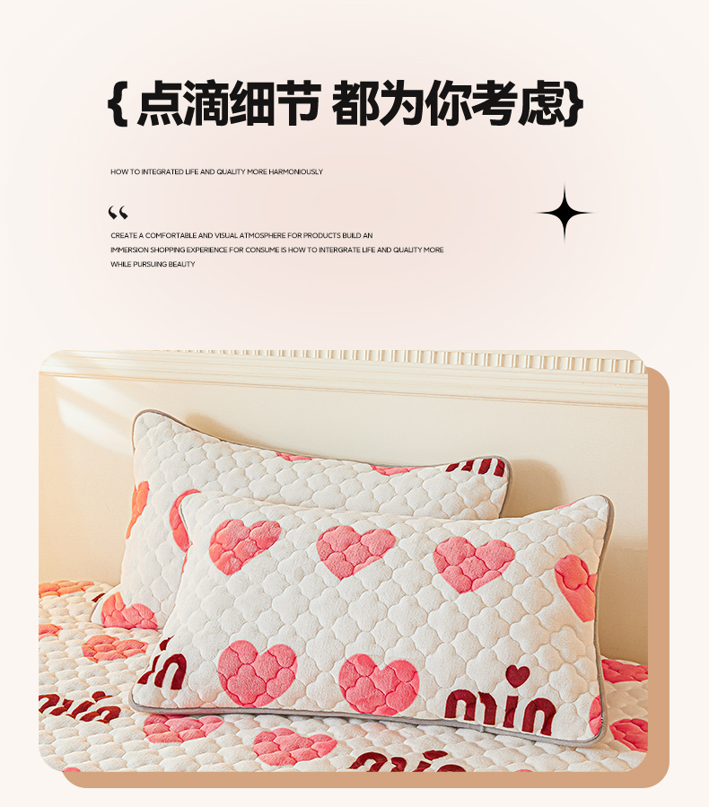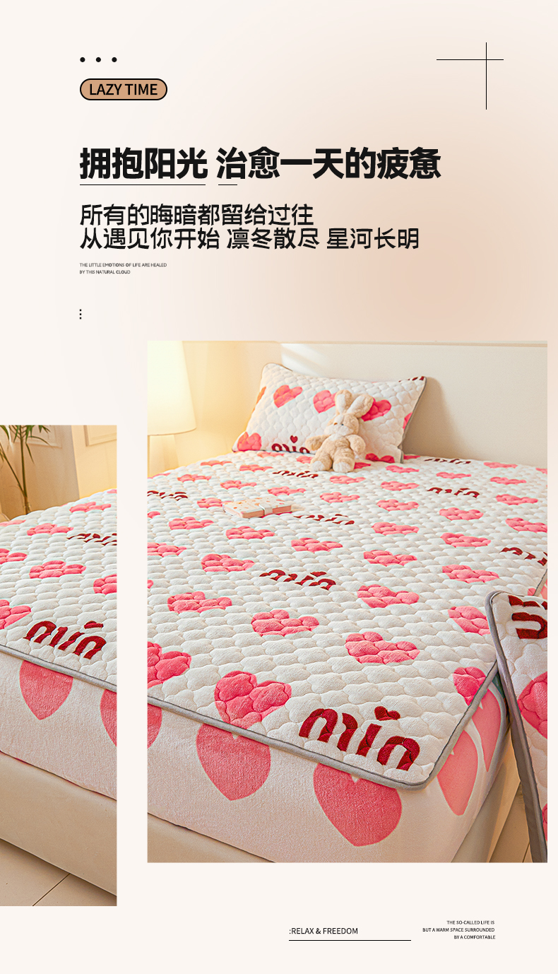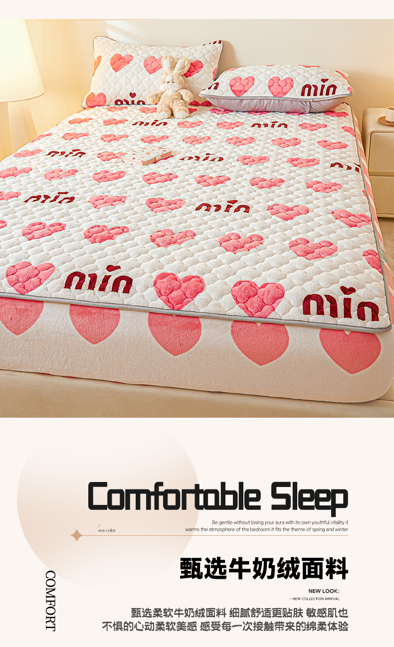 商品名称:卡伦家纺 2025新款A类牛奶绒大豆纤维抗菌夹棉床笠 甜蜜爱心