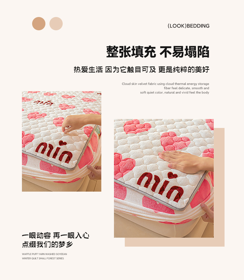(总)卡伦家纺 2025新款A类牛奶绒夹棉加厚床垫单人双人床垫保护垫,爱的印记,爱心熊,安妮宝贝,宝石蓝,缤纷小可爱,草莓之恋,呆萌恐龙,高级灰,高雅紫,红豆沙,花间蘑力,花开一夏,花之谷,金叶飘香,开心乐园,梦想创造家,抹茶绿,南瓜灰灰,南瓜派,青春曲调,轻羽飞扬,甜蜜爱心,甜心小熊,香槟金,心相印,星幻恐龙,星梦露,熊熊世界,樱桃花语,云端漫步