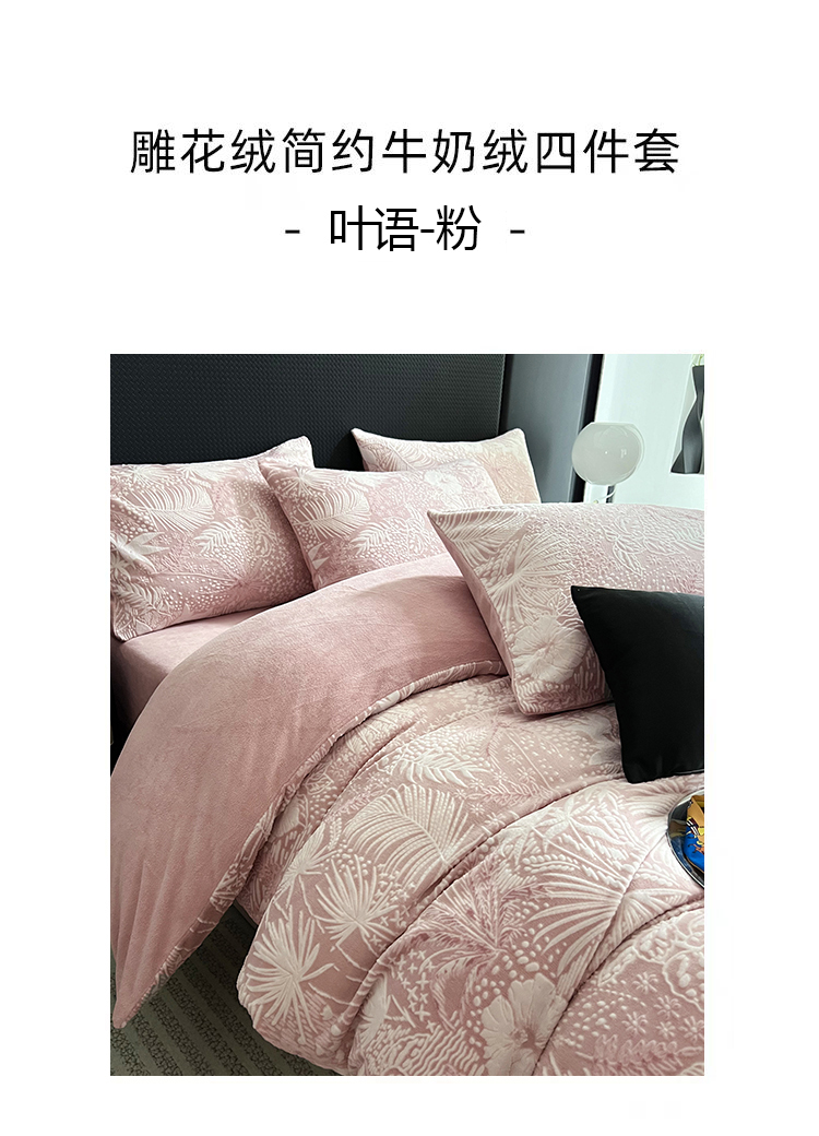 当前位置: 91家纺网 > 商品网购 > 床品套件 > 四件套 > 牛奶绒四件套 > HL原创 2024新款轻奢风雕花牛奶绒四件套 安娜