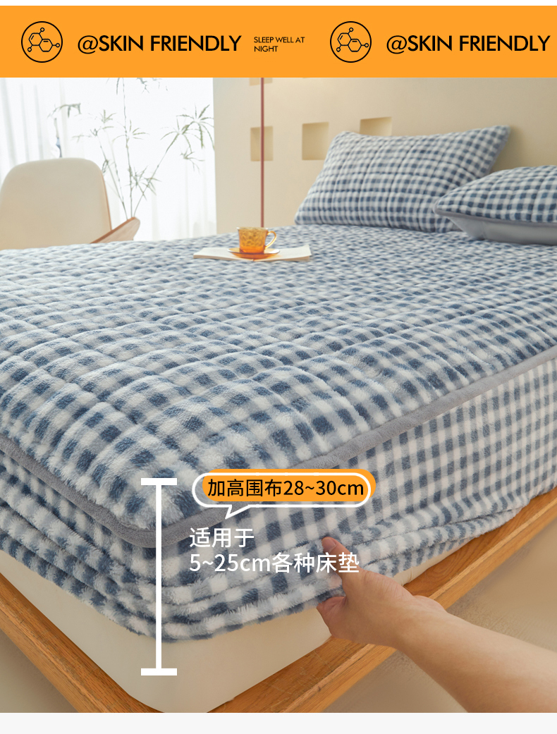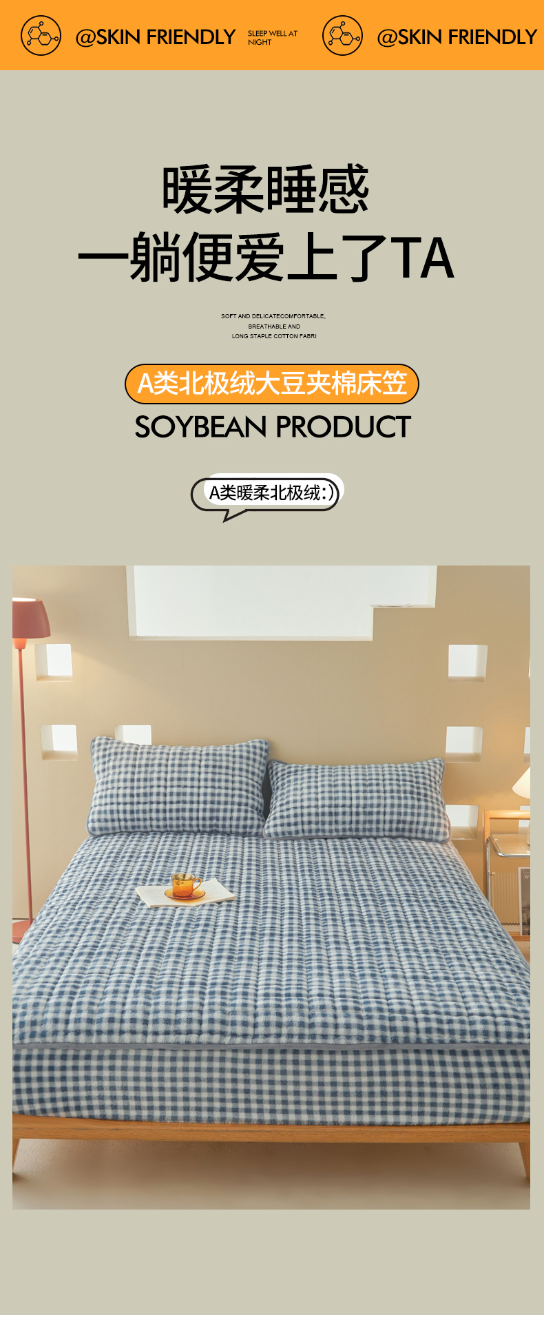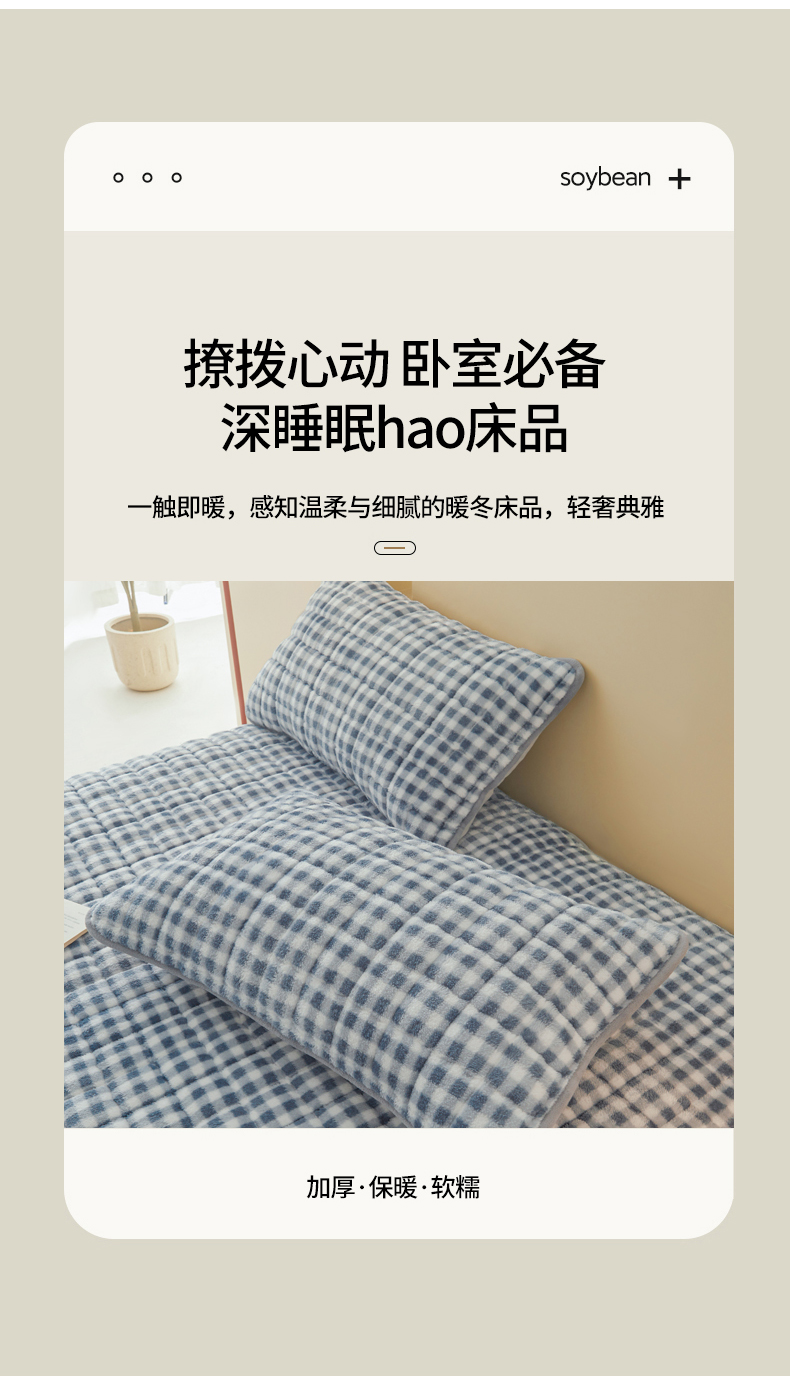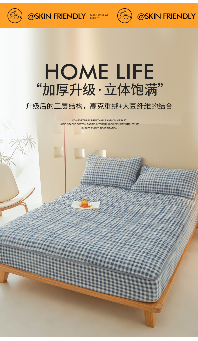 • 91家纺网 家纺一手货源 找家纺 2024秋冬北极绒加厚夹棉床笠三件套印花泰迪绒床垫保护套罩-无印风系列 蓝小格
