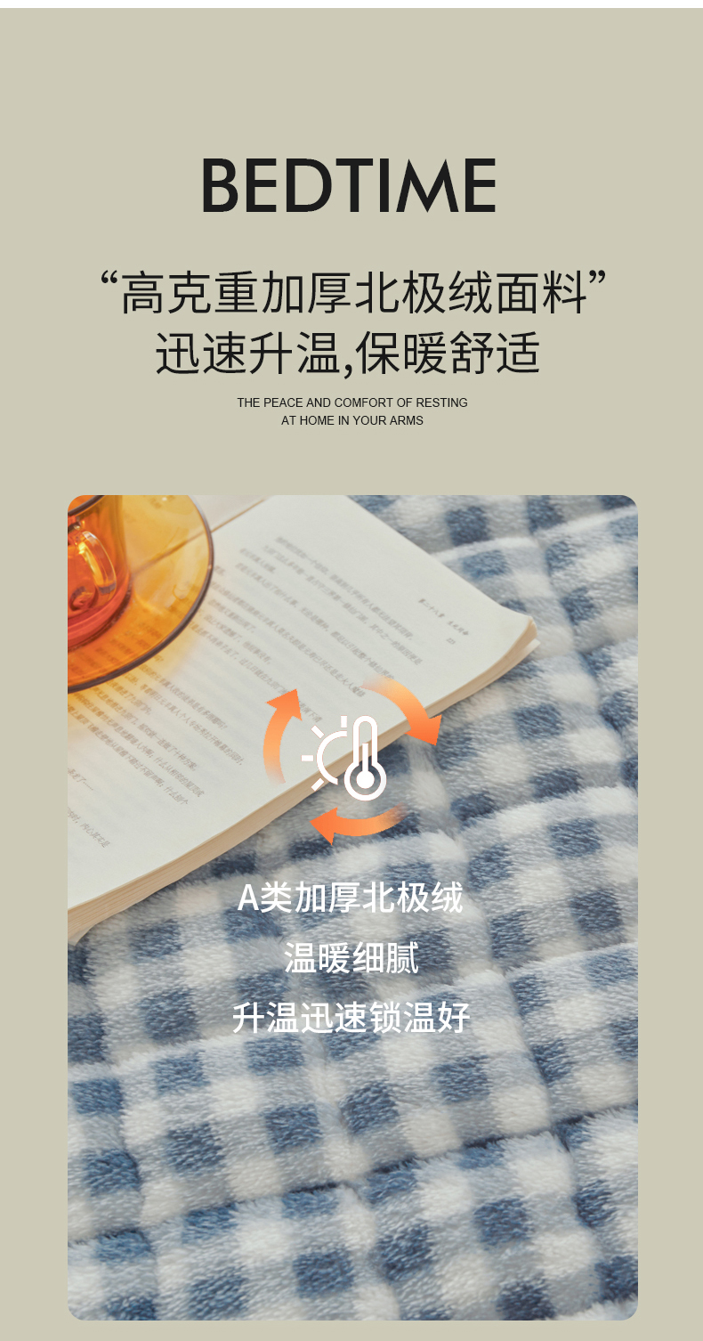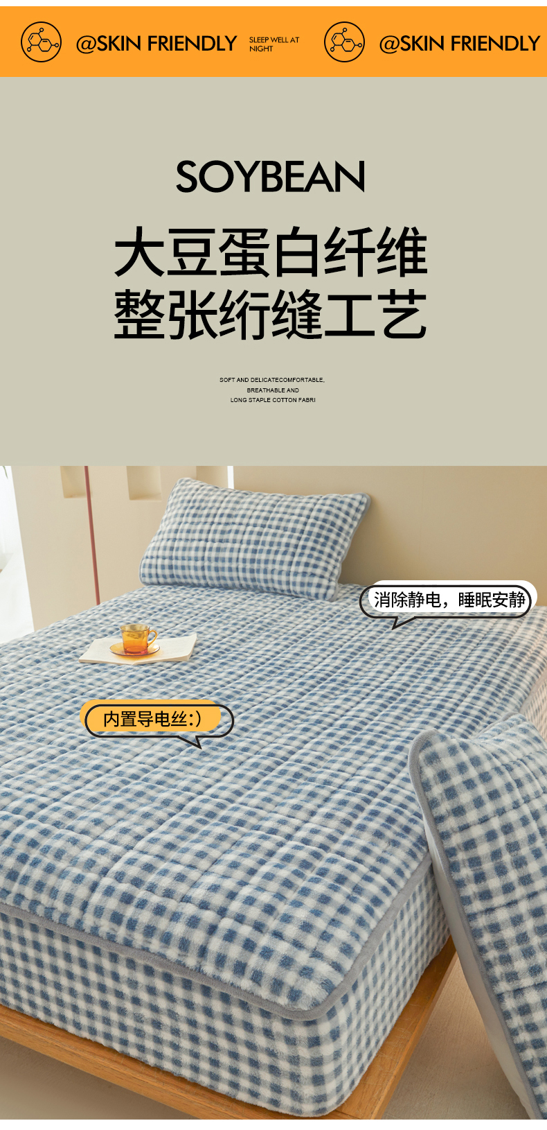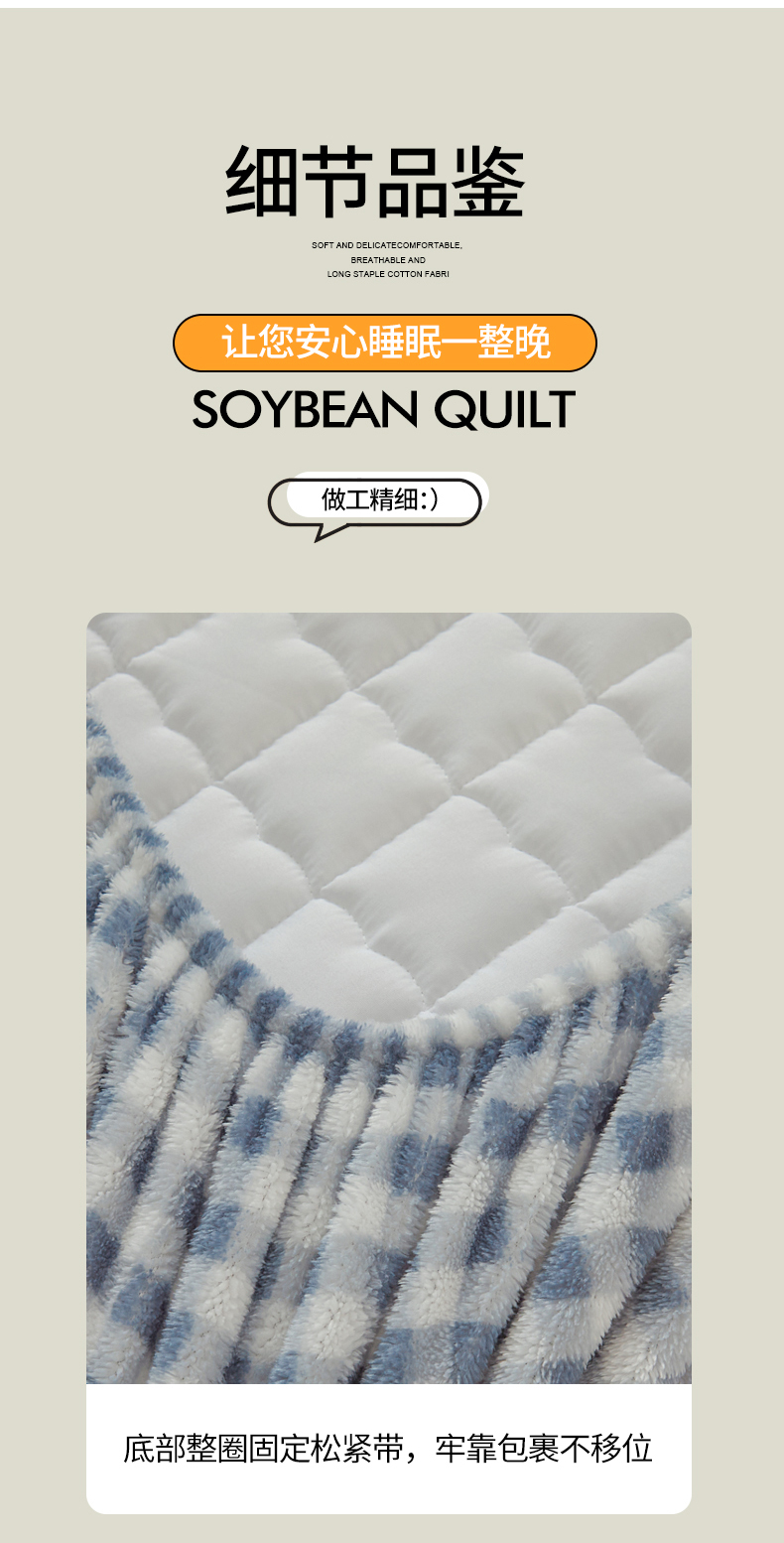 • 91家纺网 家纺一手货源 找家纺 2024秋冬北极绒加厚夹棉床笠三件套印花泰迪绒床垫保护套罩-无印风系列 蓝小格