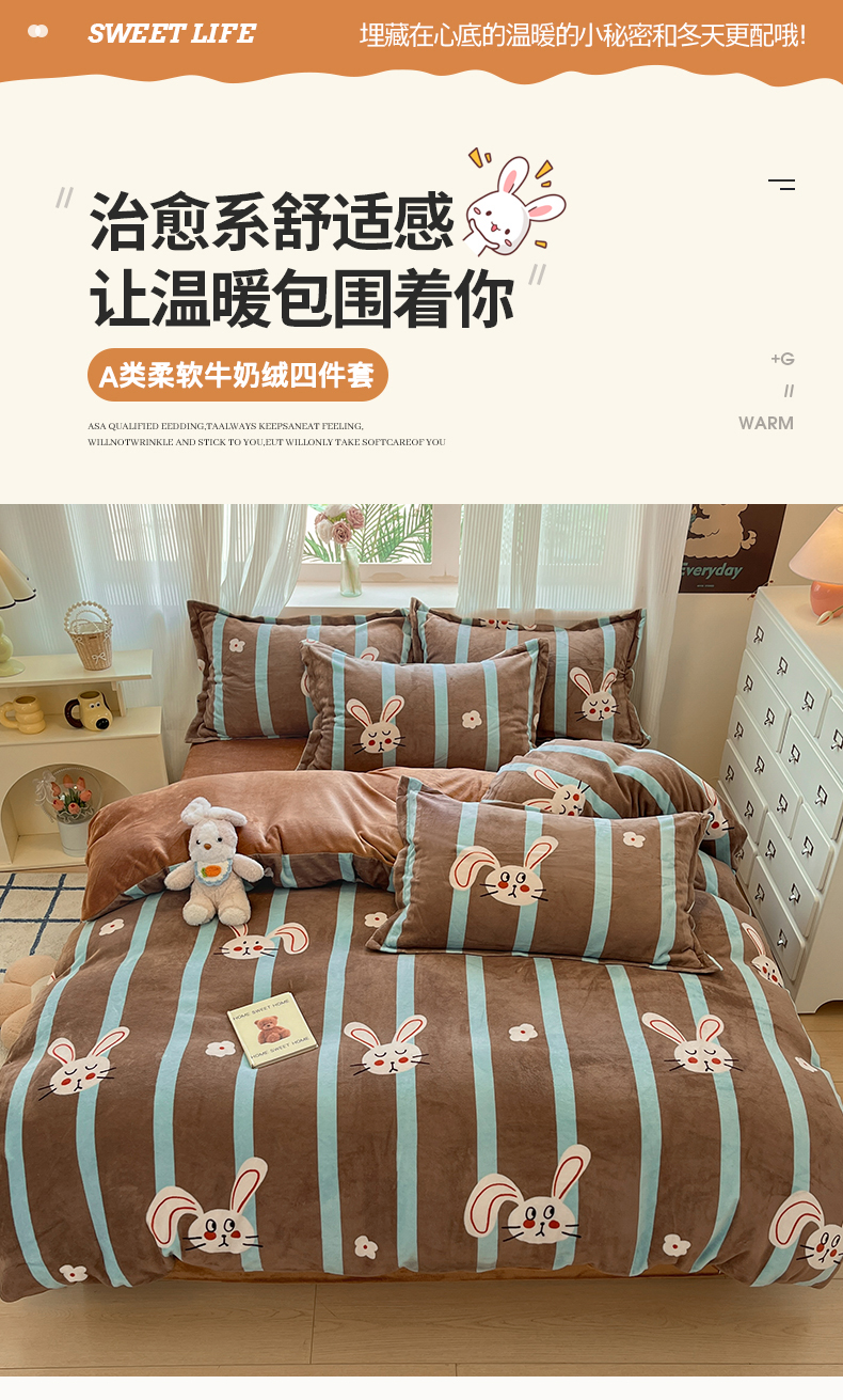 当前位置: 91家纺网 > 商品网购 > 床品套件 > 四件套 > 牛奶绒四件套 > 寐居家纺 2024新款A类小清新牛奶绒印花四件套 爱心泡泡