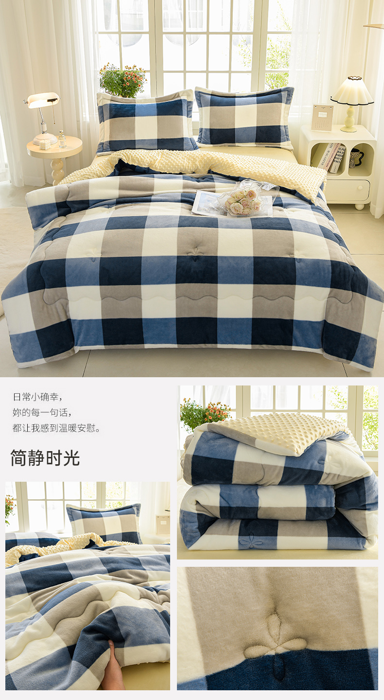 • 91家纺网 家纺一手货源 找家纺 圣楚家纺 2024新款牛奶豆豆绒印花保暖冬被 简静时光