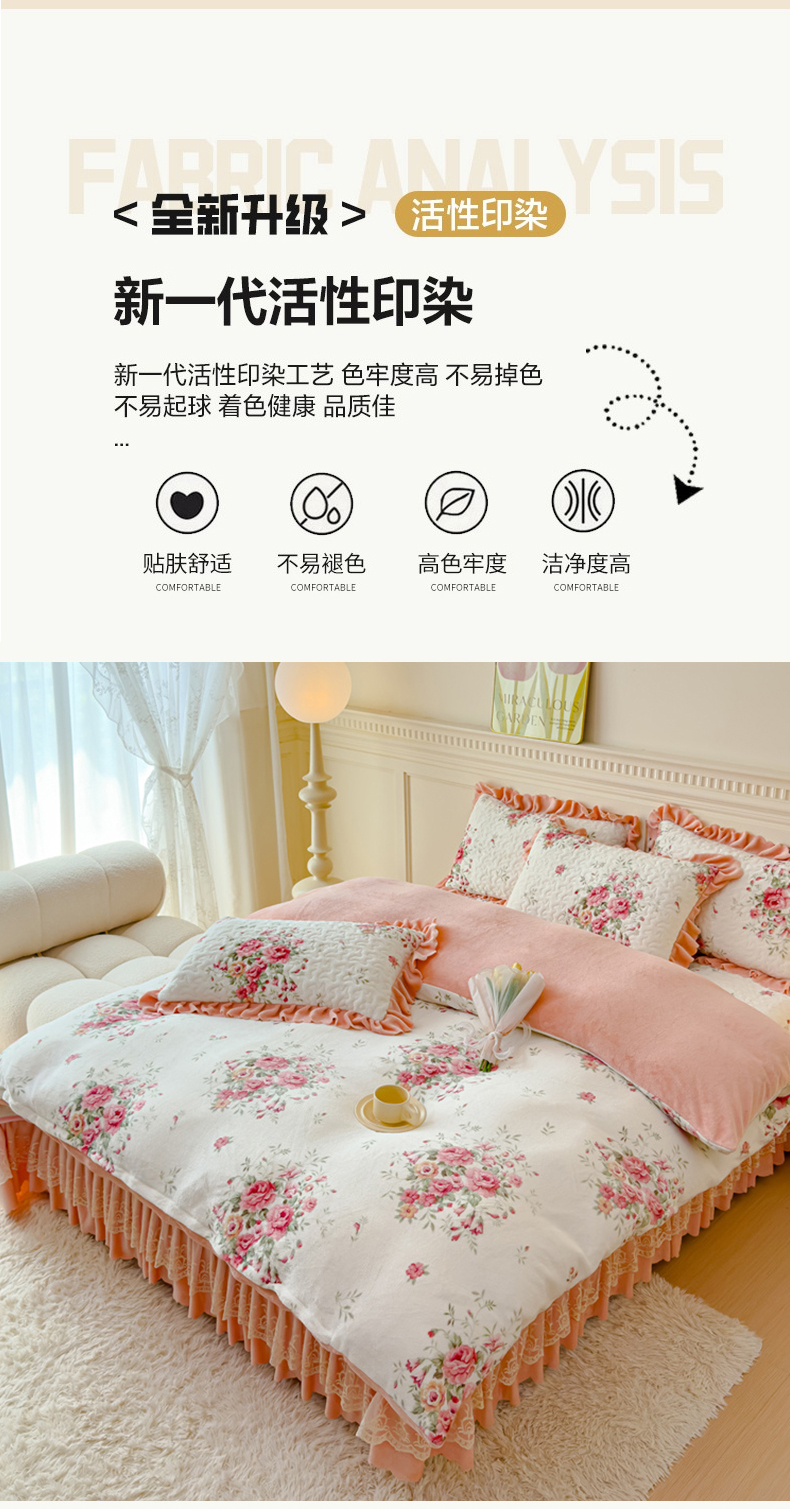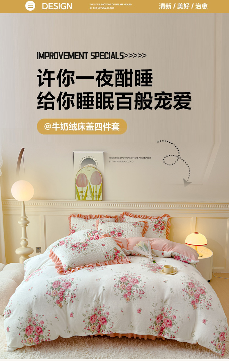 当前位置: 91家纺网 > 商品网购 > 床品套件 > 四件套 > 牛奶绒四件套 > 铠畅 2025新款加厚牛奶绒床盖四件套 花香