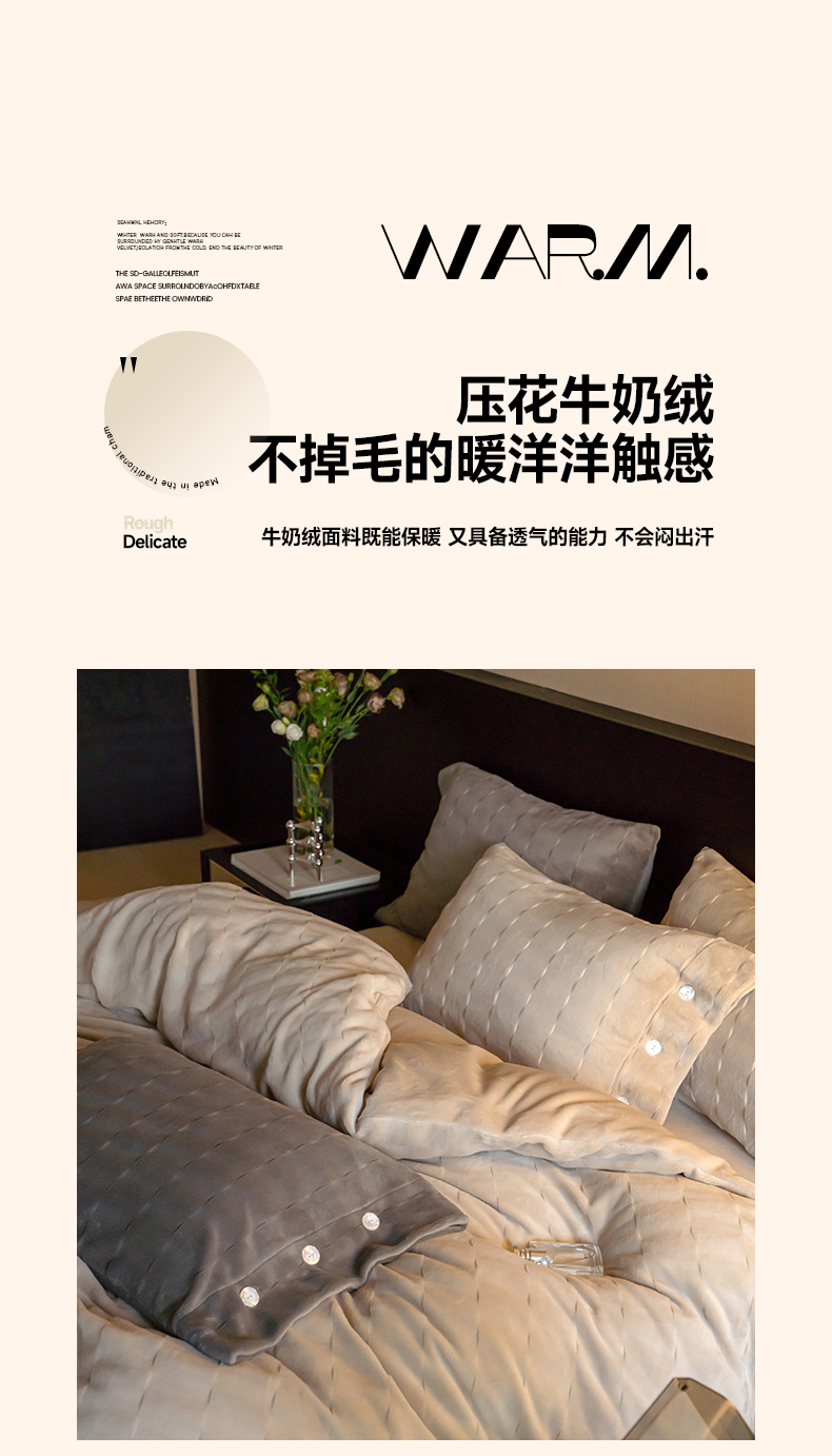 当前位置: 91家纺网 > 商品网购 > 床品套件 > 四件套 > 牛奶绒四件套 > 华超针织 2024新款剪花牛奶绒四件套-赫拉系列 赫拉-奶茶