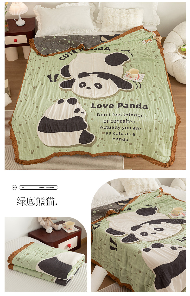 乐家毛巾被 2024新款十层纱布泡芙被 绿地熊猫
