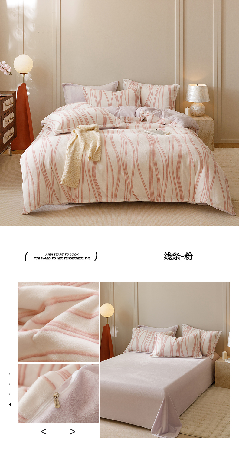商品名称:席佬大 2025新款230g轻奢肌理纹雕花工艺款加厚牛奶绒四件套(可提供买家秀 ) 线条-粉