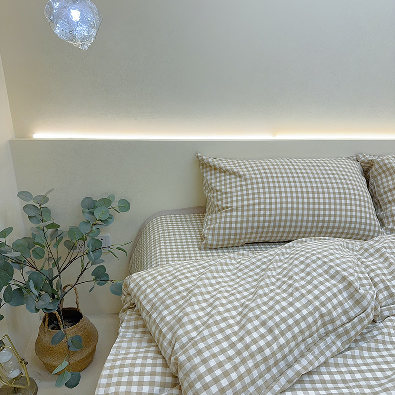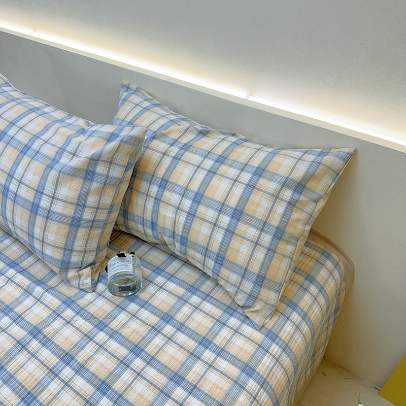 商品名称:2024新款水洗全棉条格床盖四件套 米中格
