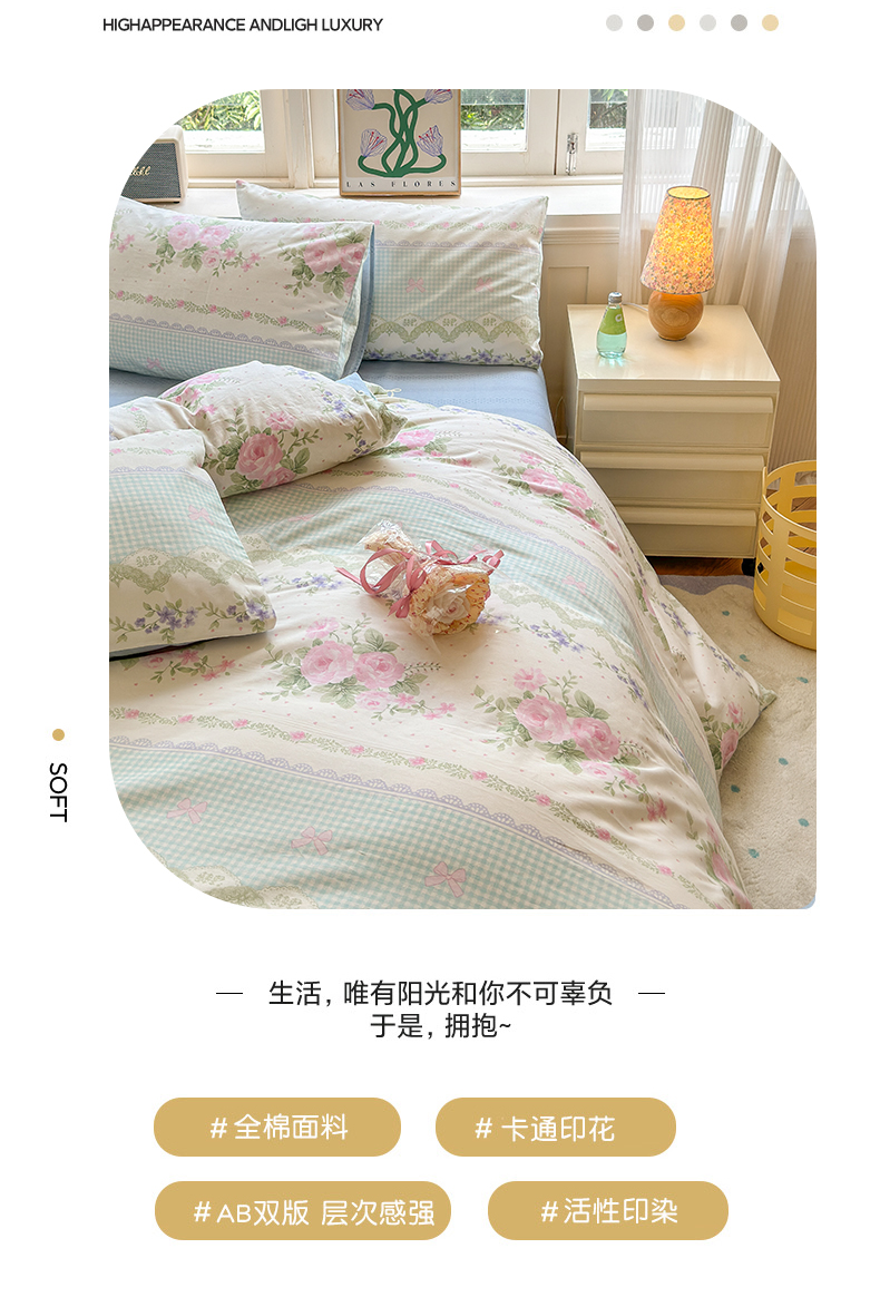 (总)清雅福 2023新款全棉小清新四件套第二批,彩虹爱人,草莓园,戴安娜,花开似锦,幻想曲,恋爱旋律,柠檬树,皮皮狗,七色瑾,少女心,恬静,小格格,小美好