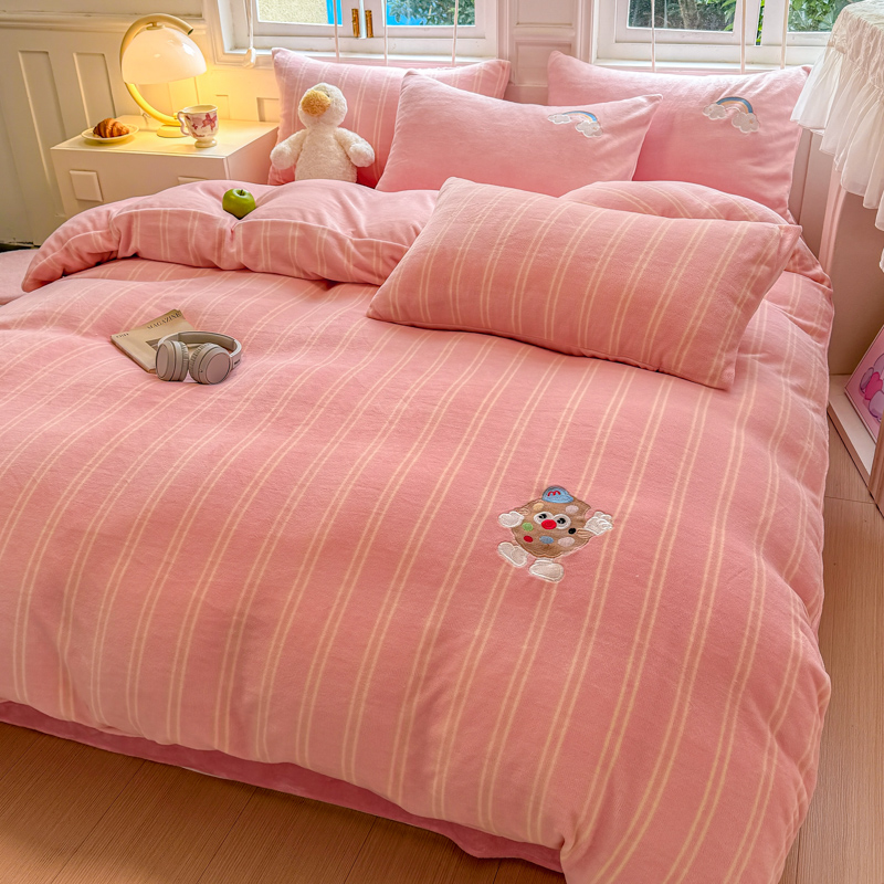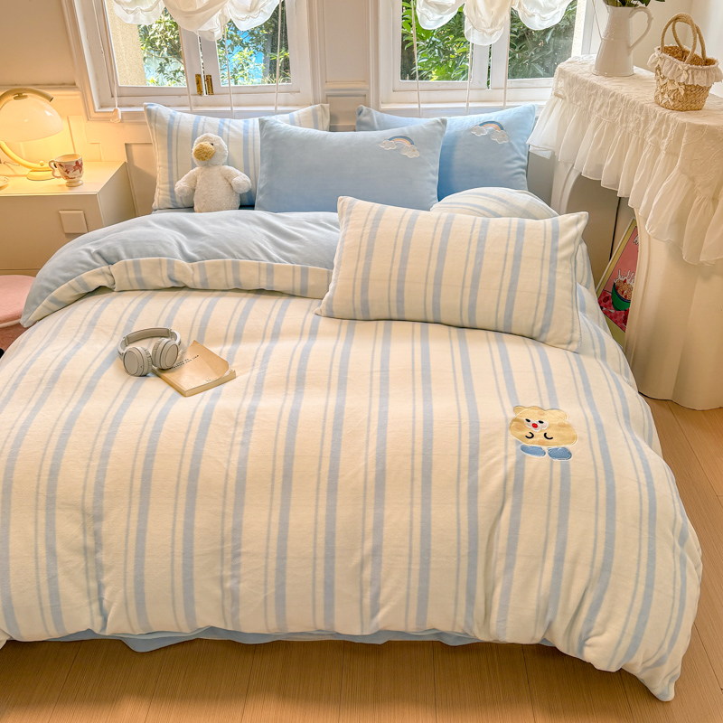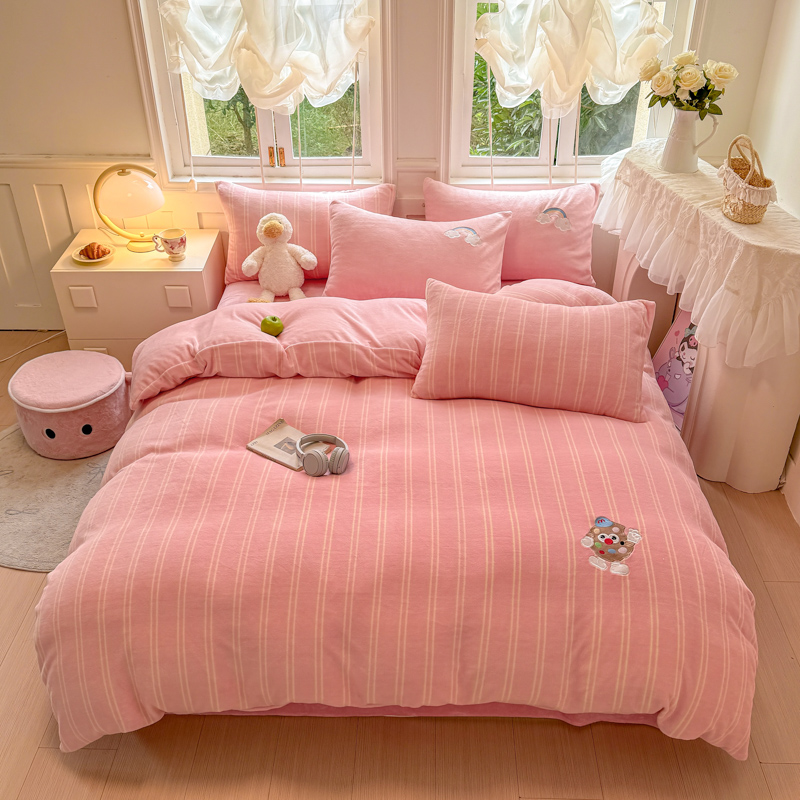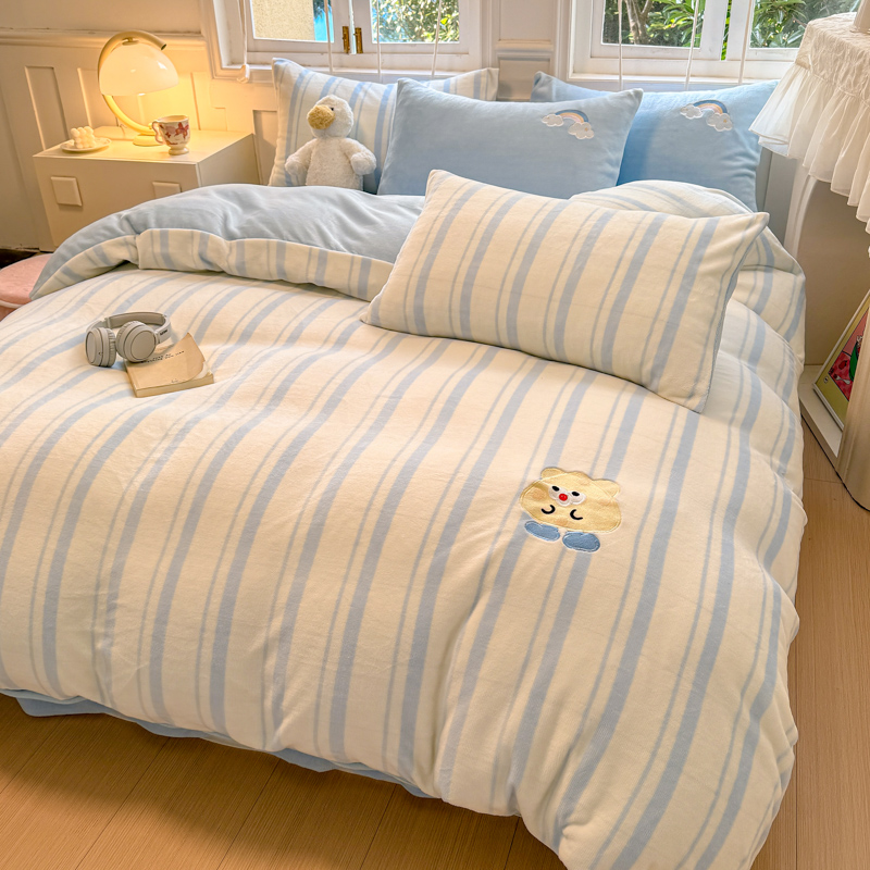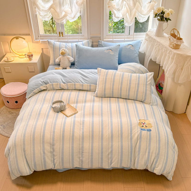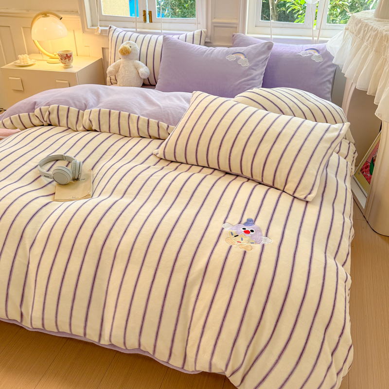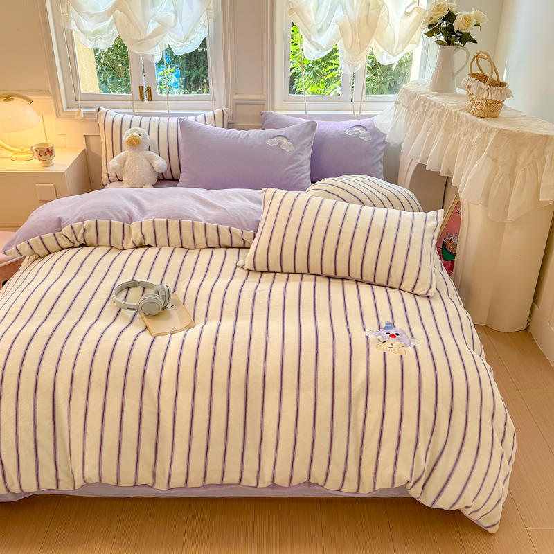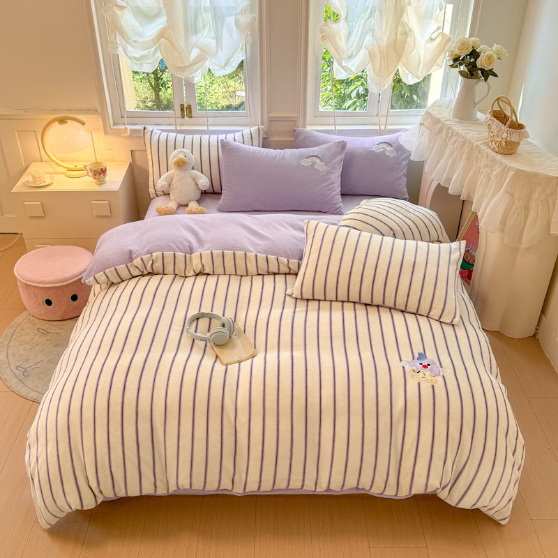 当前位置: 91家纺网 > 商品网购 > 床品套件 > 四件套 > 牛奶绒四件套 > 麦朵家居 2024新款高克重牛奶绒绣花四件套宝宝绒套件羊羔绒毛毯床笠绒四件套-曲奇系列 曲奇-紫条纹