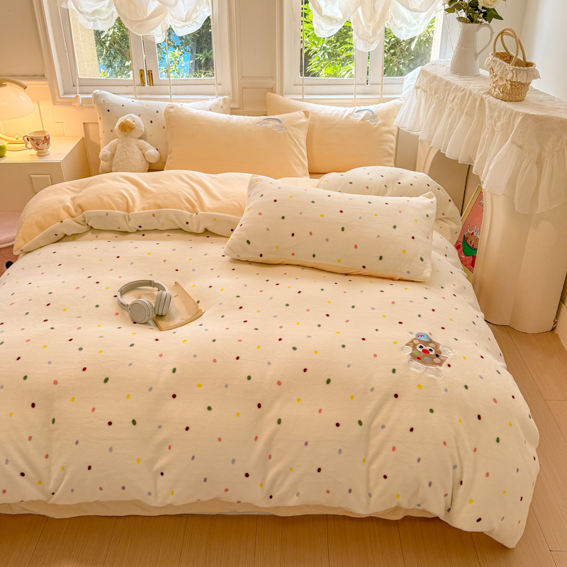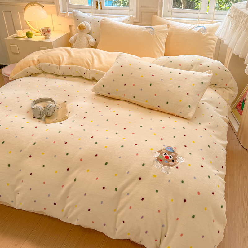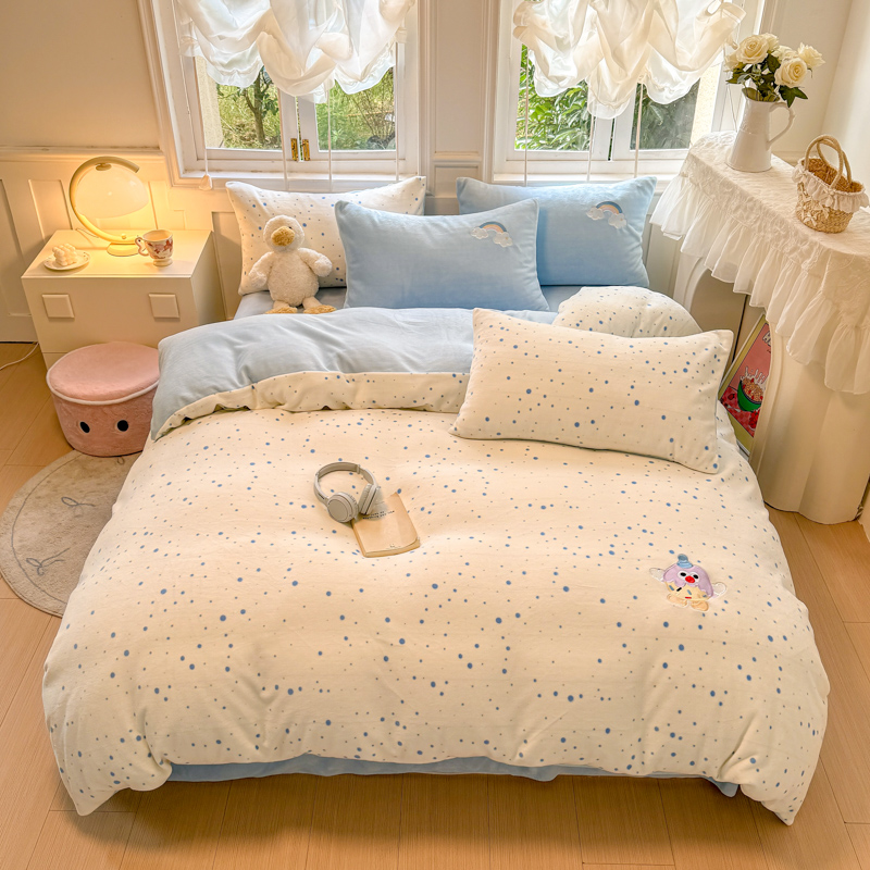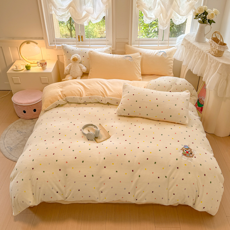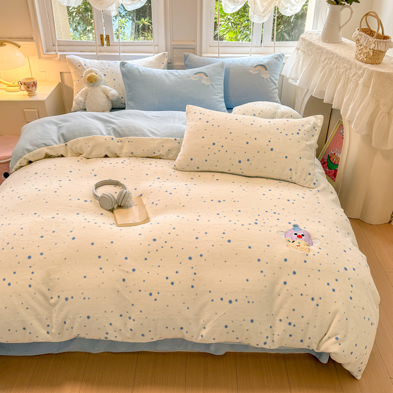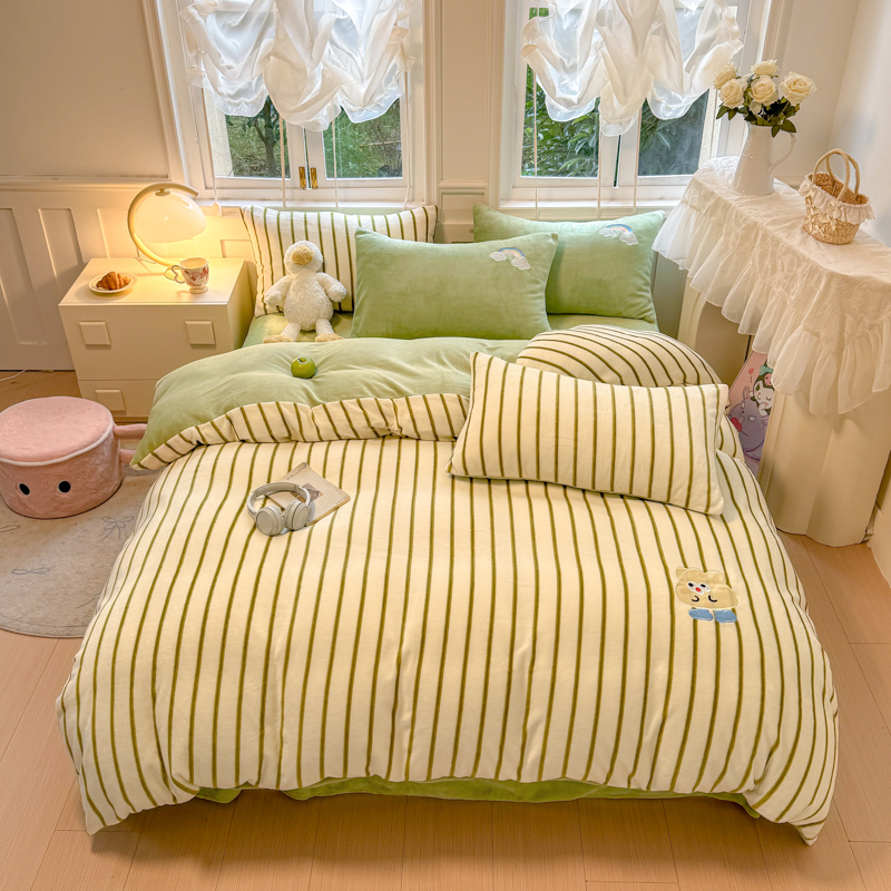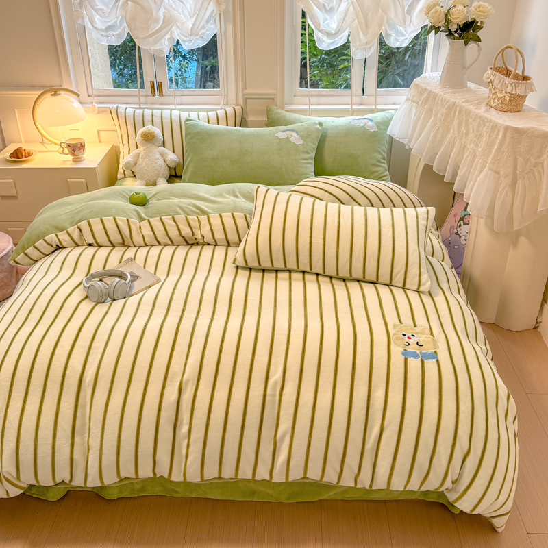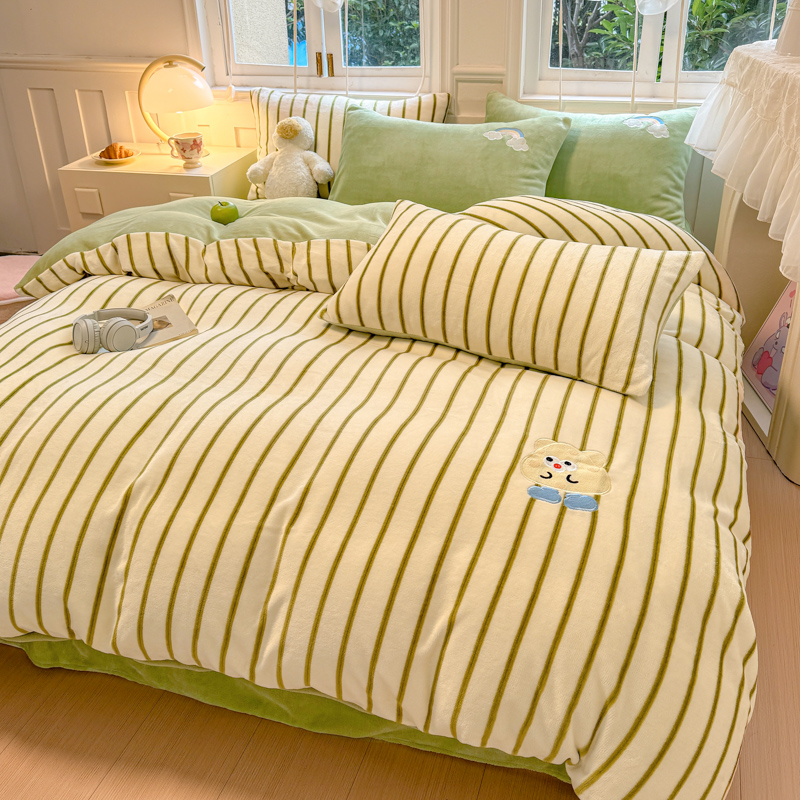 当前位置: 91家纺网 > 商品网购 > 床品套件 > 四件套 > 牛奶绒四件套 > 麦朵家居 2024新款高克重牛奶绒绣花四件套宝宝绒套件羊羔绒毛毯床笠绒四件套-曲奇系列 曲奇-紫条纹