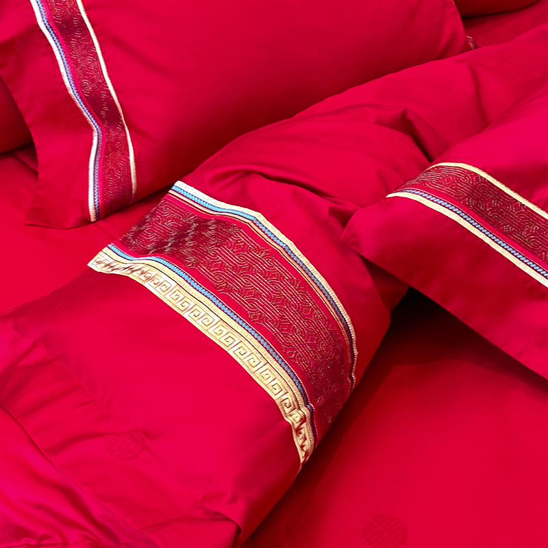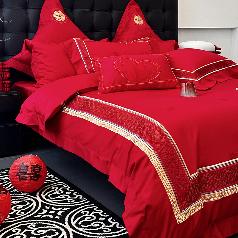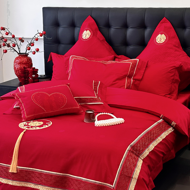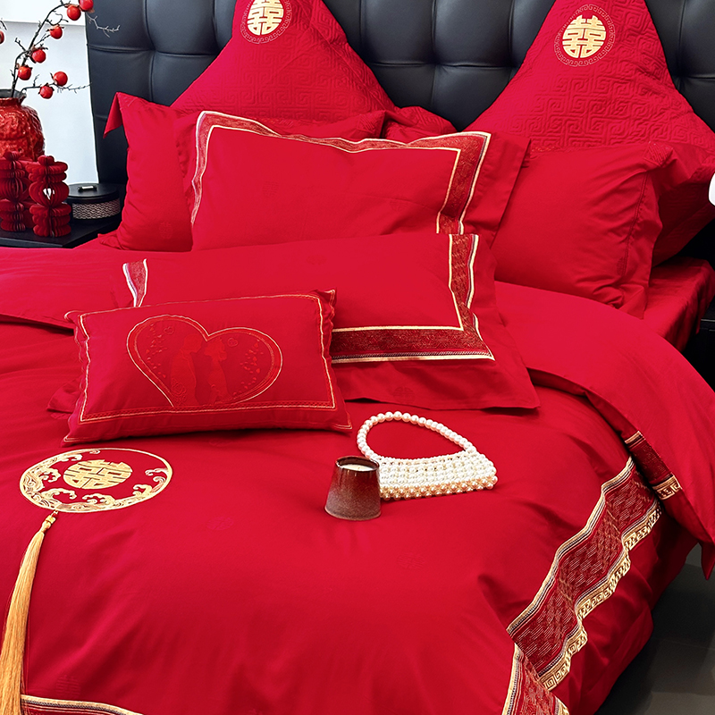商品名称:JUICY 橘滋家纺 2024新款100支全棉提花高端婚庆《囍》系列四件套 卡菲娅