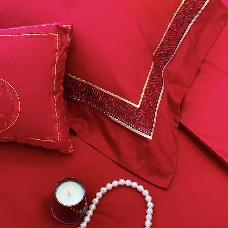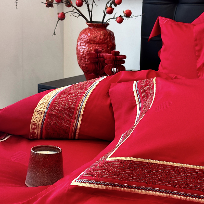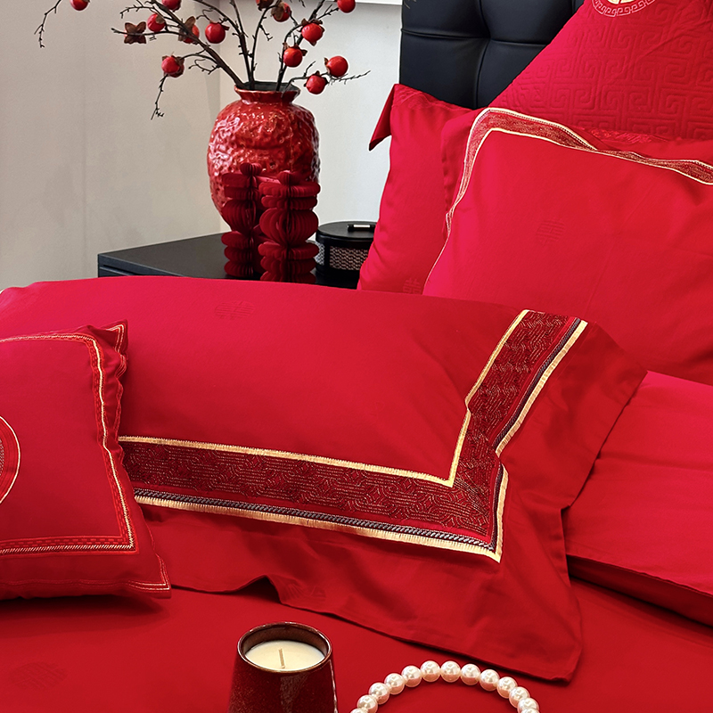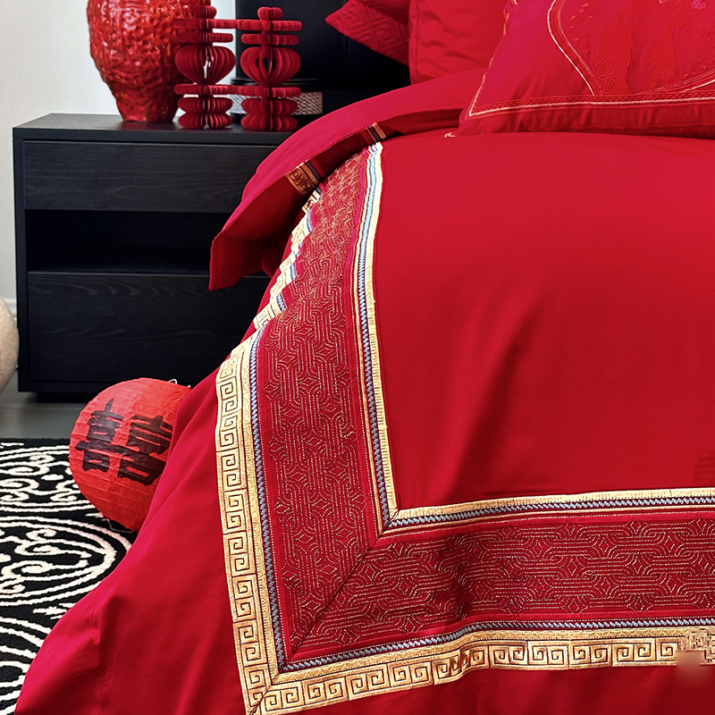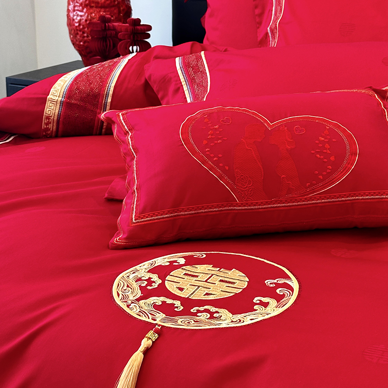JUICY 橘滋家纺 2024新款100支全棉提花高端婚庆《囍》系列四件套 卡菲娅