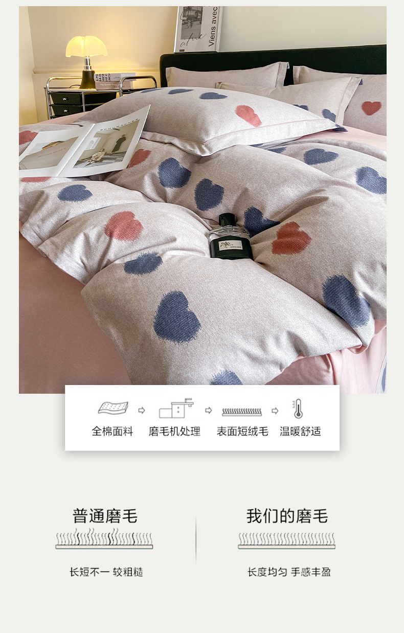 当前位置: 91家纺网 > 商品网购 > 床品套件 > 四件套 > 普通磨毛四件套 > 大柏树 2025新款A类全棉磨毛印花四件套 满心欢喜