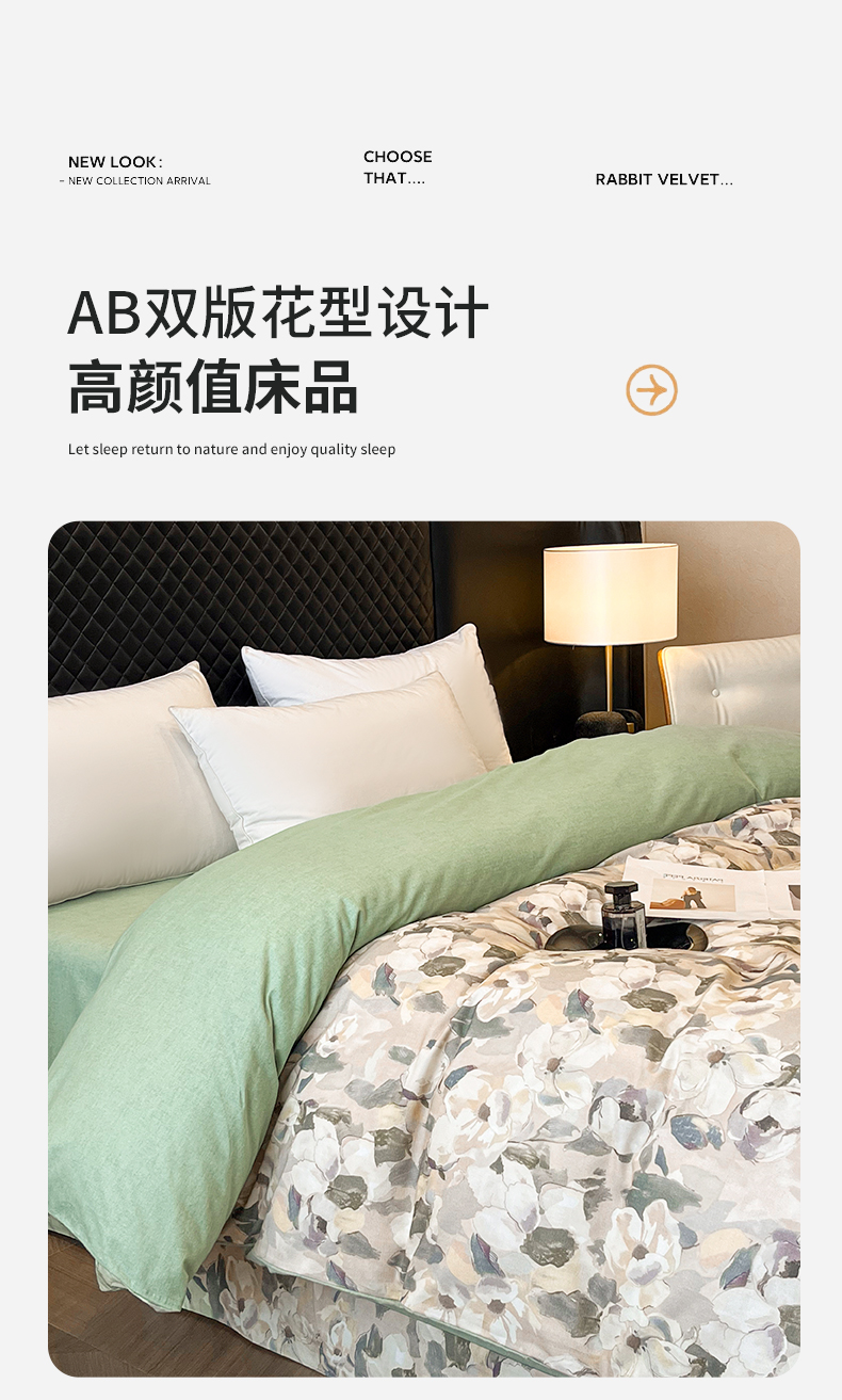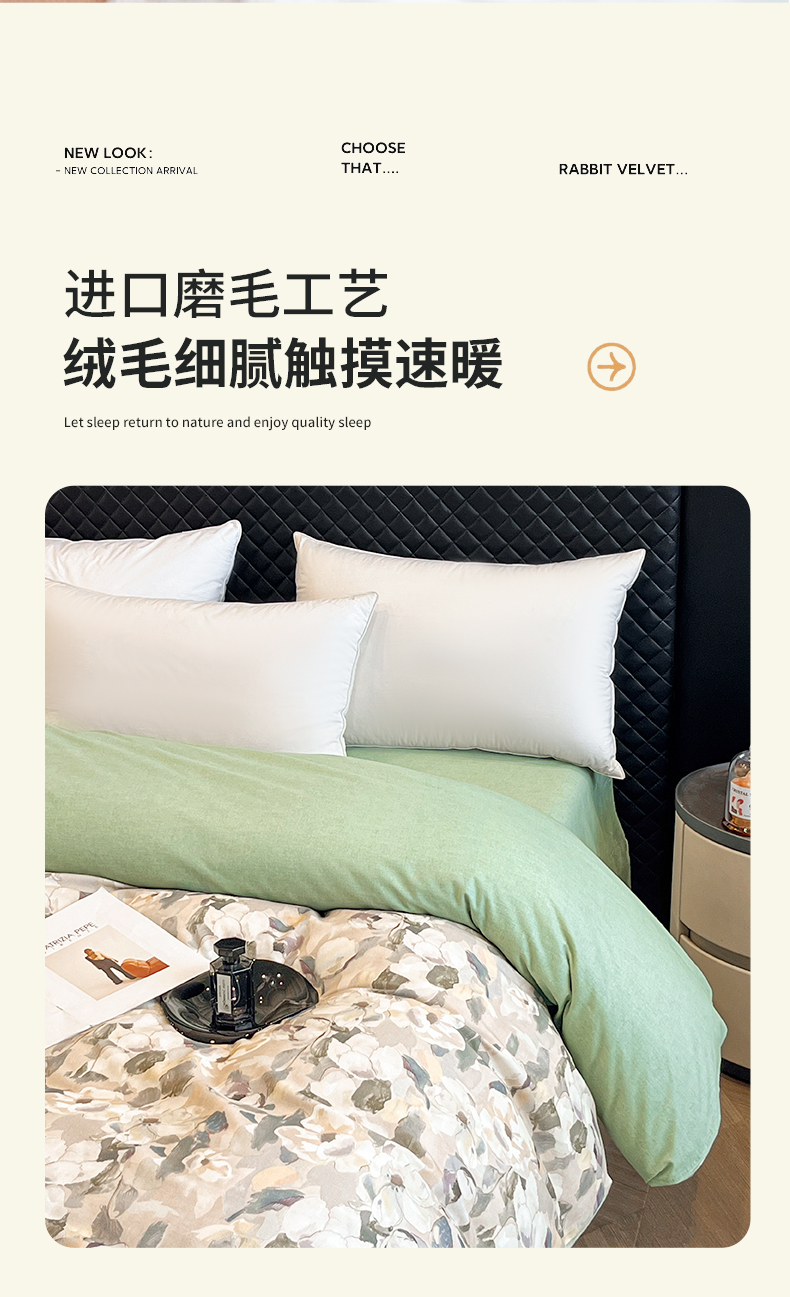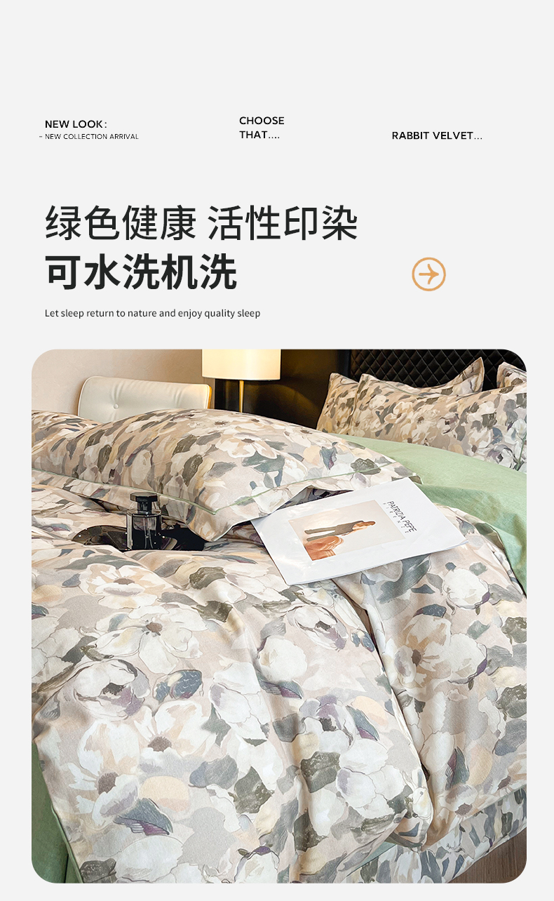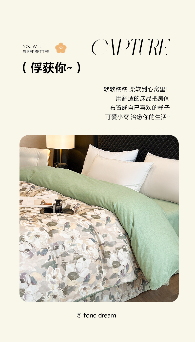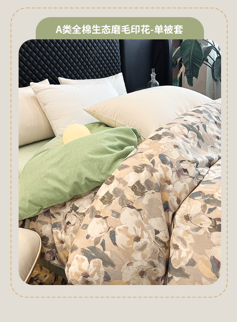 • 91家纺网 家纺一手货源 找家纺 大柏树 2025新款A类全棉磨毛印花单被套 露瑶绿