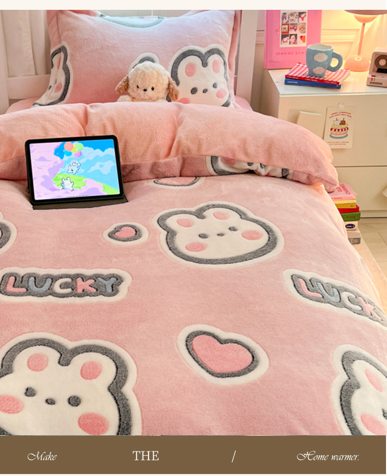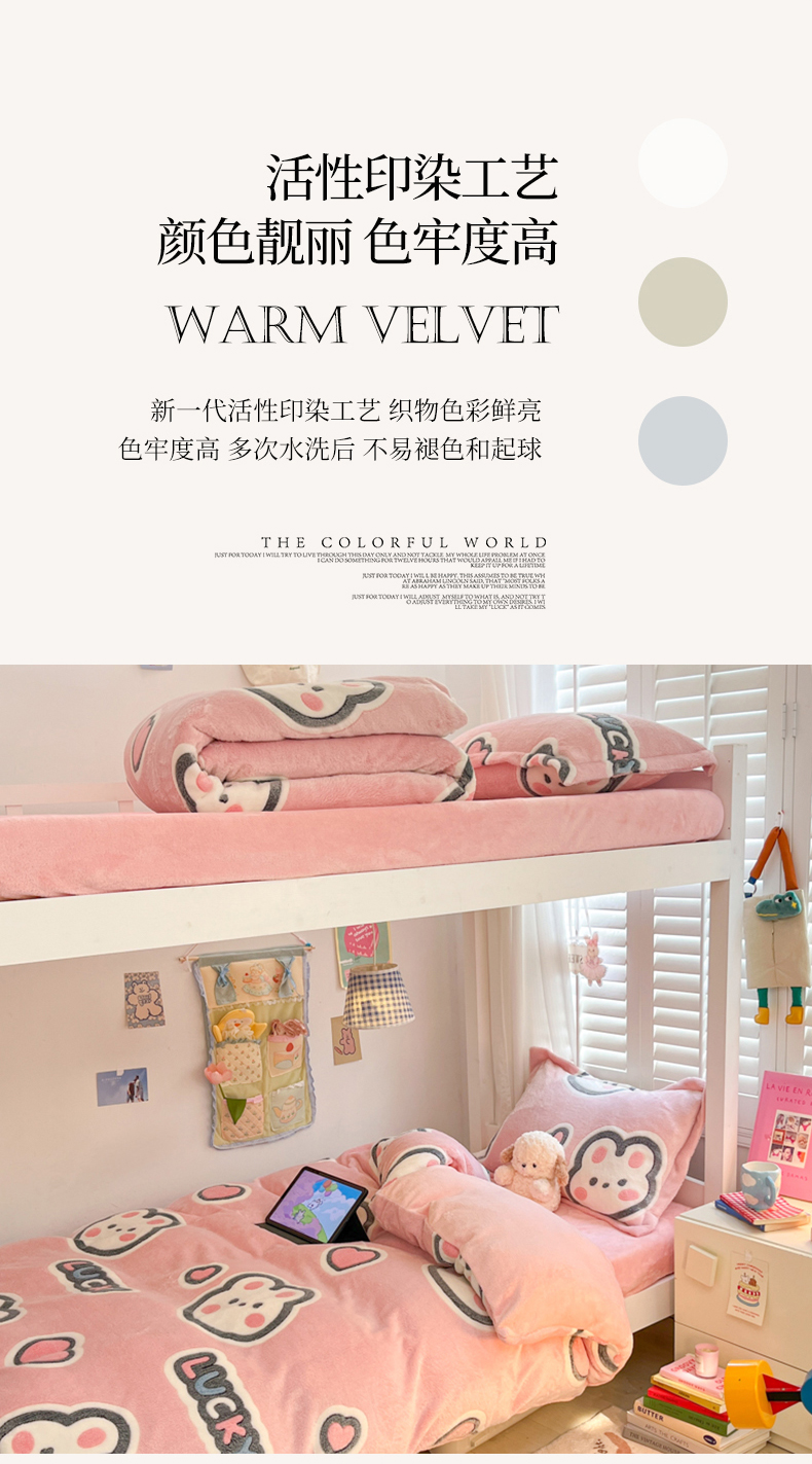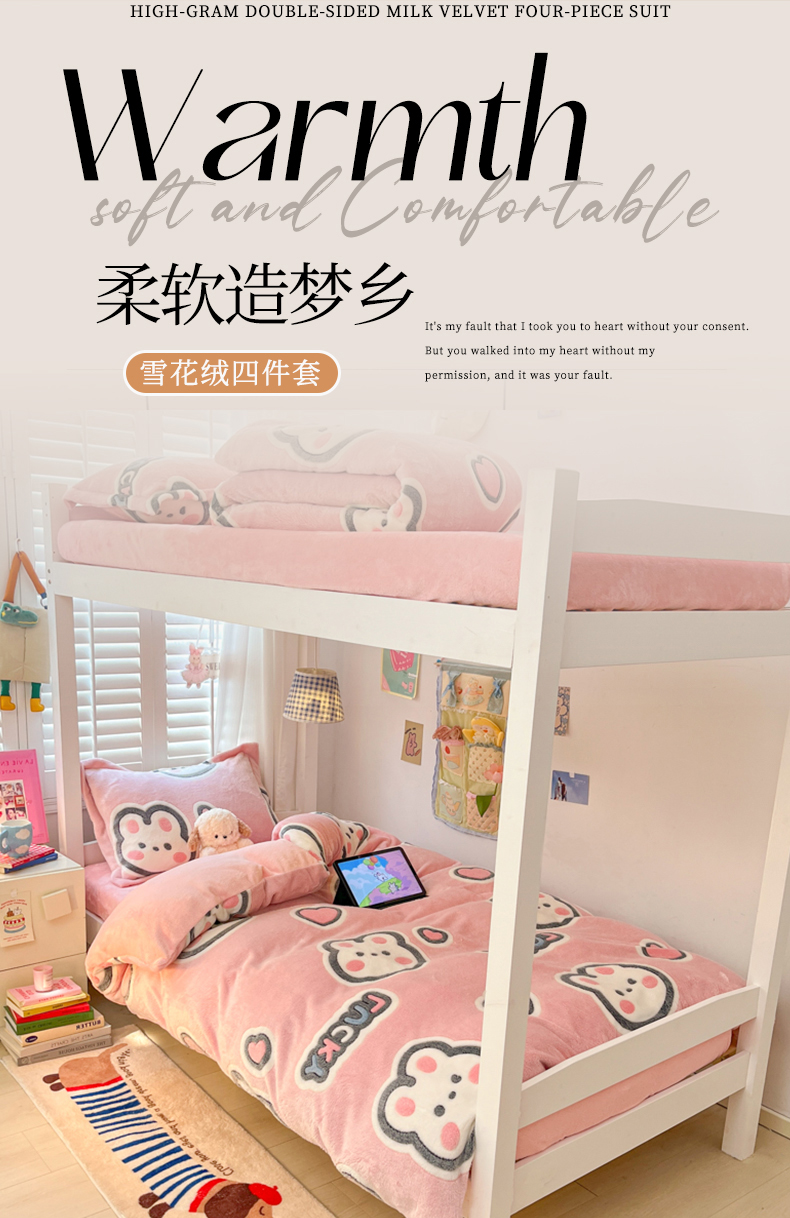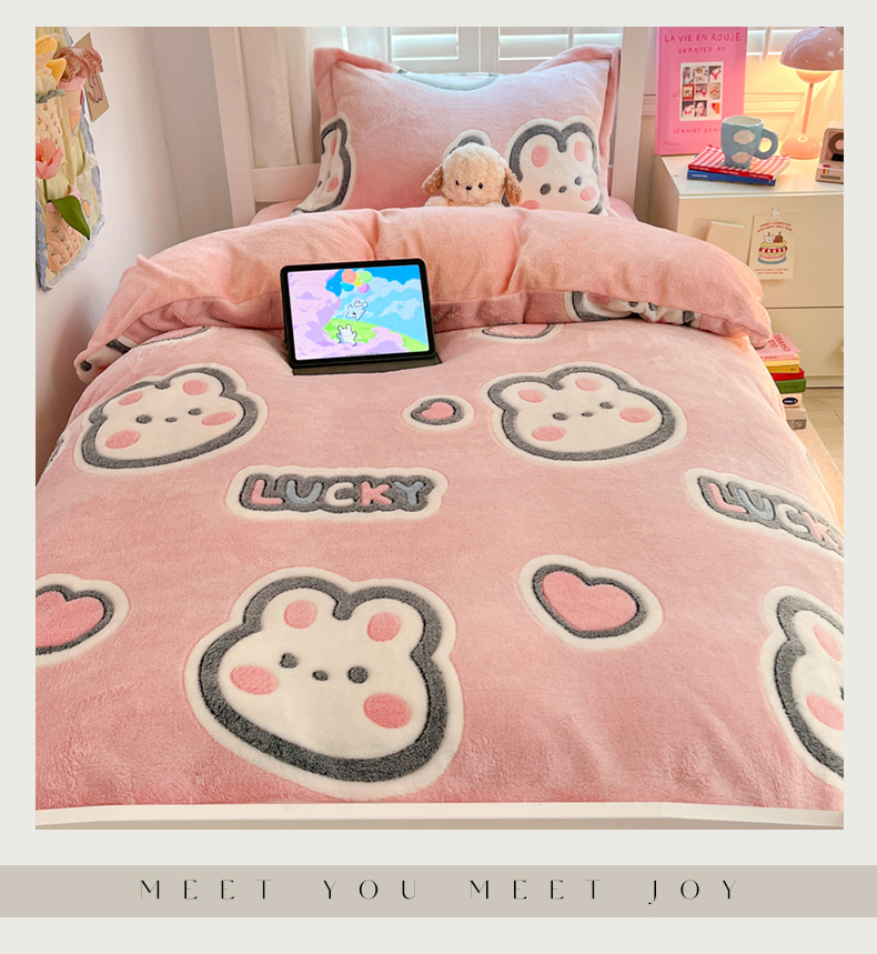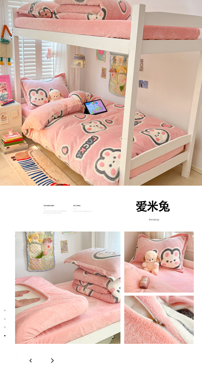 当前位置: 91家纺网 > 商品网购 > 床品套件 > 三件套 > 川悦生活 2024新款立体雪花绒宿舍床笠款三件套四件套 爱米兔
