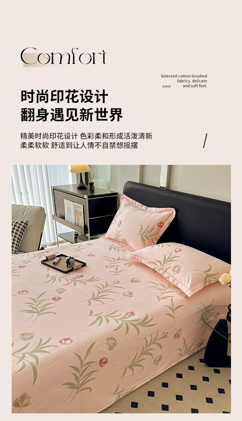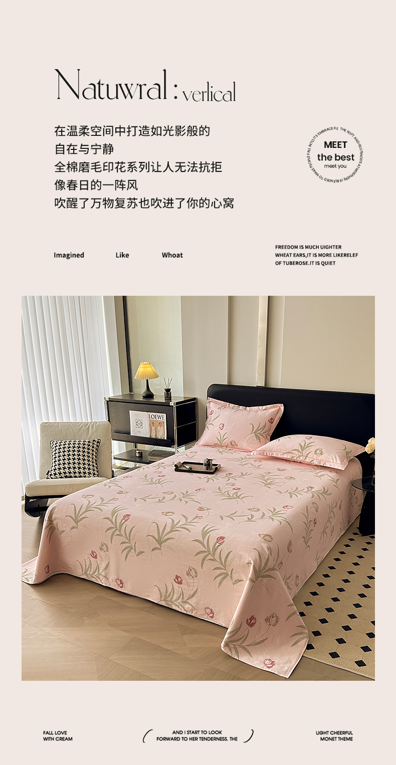 商品名称:大柏树 2025新款A类全棉磨毛印花单床单 绿禾