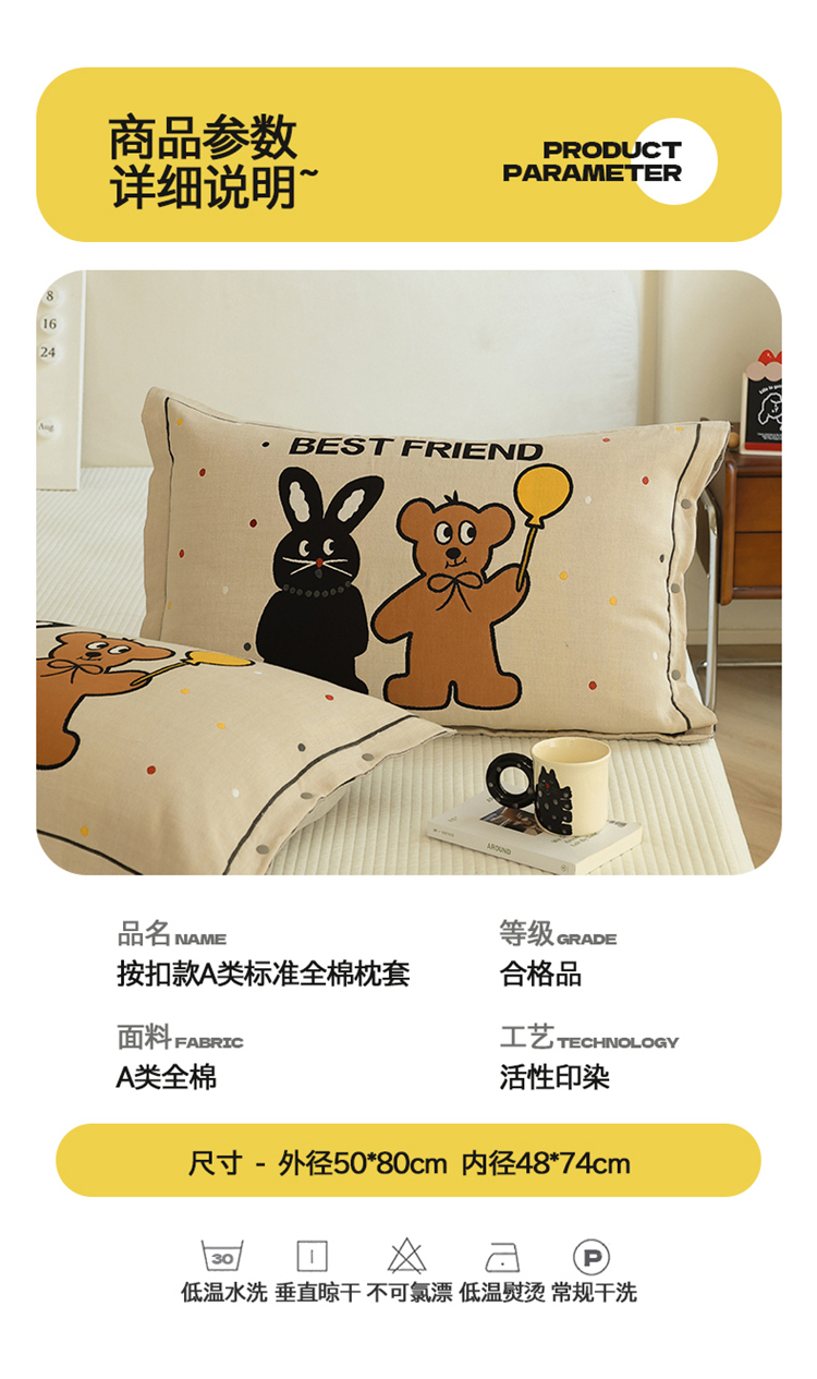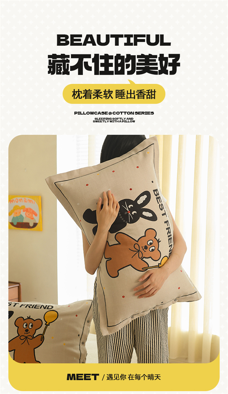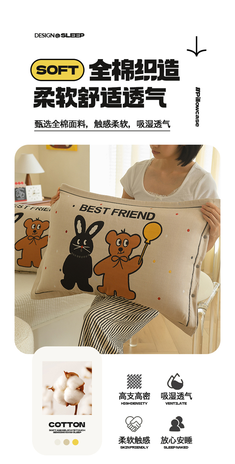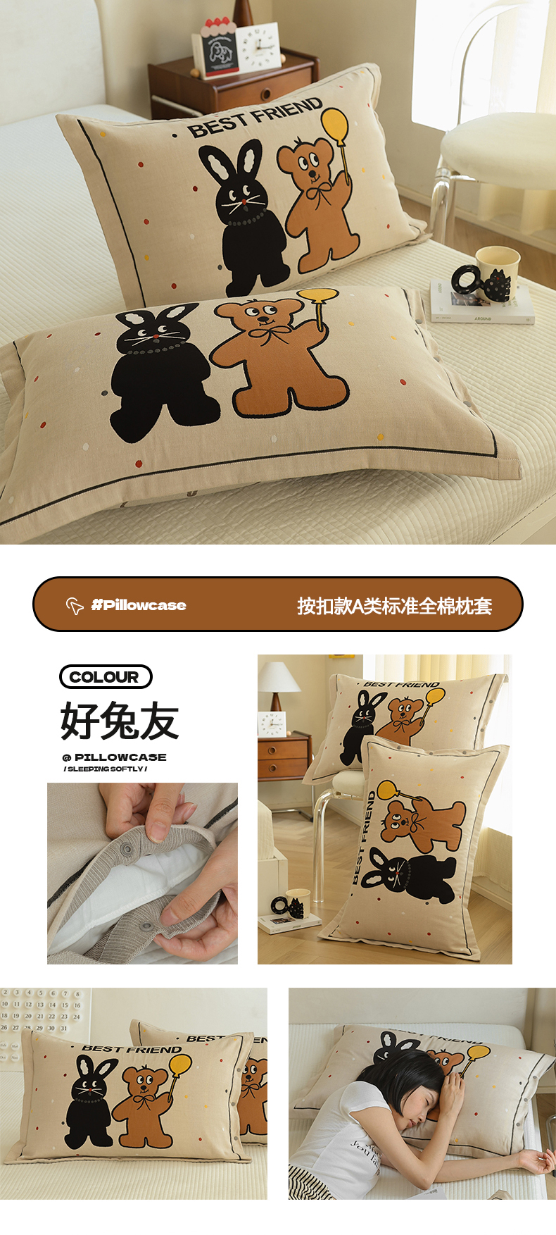 商品名称:2024新款全棉四层纱布枕套一对装纽扣款枕套 好兔友