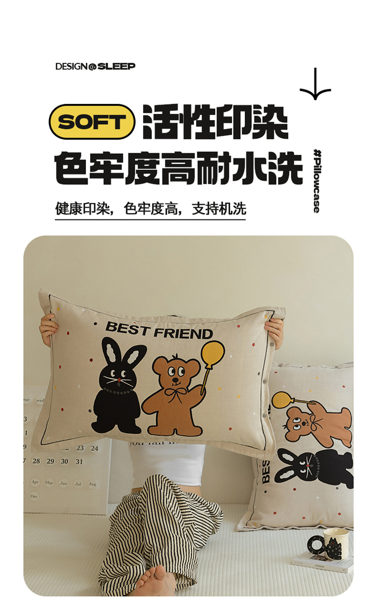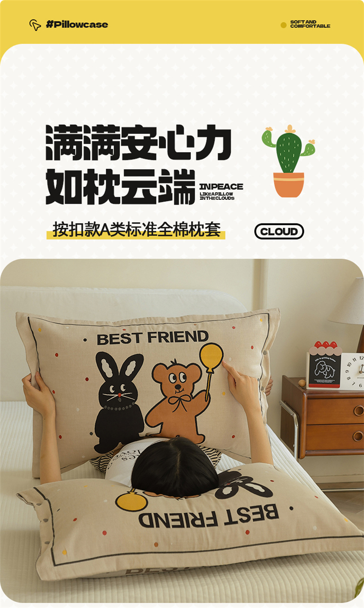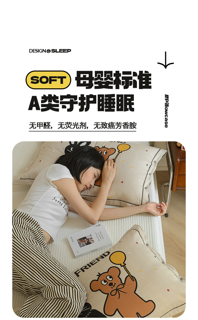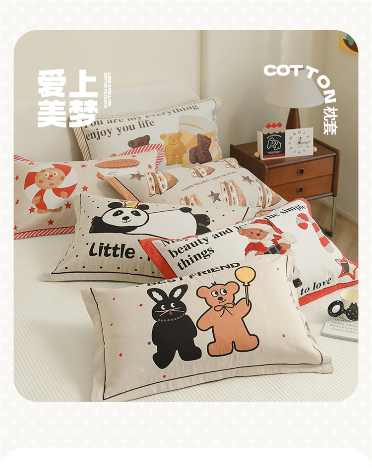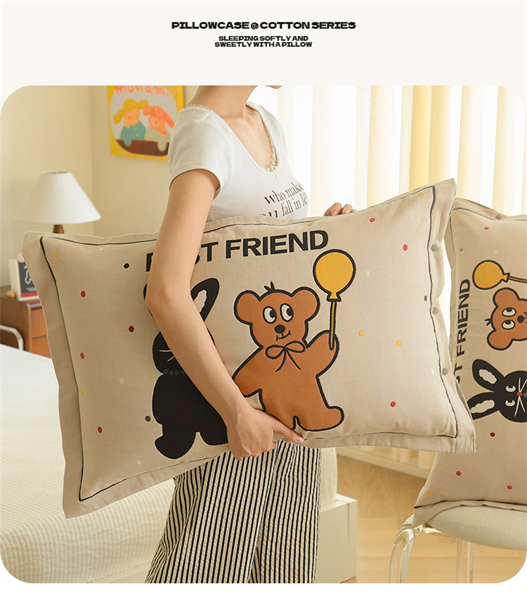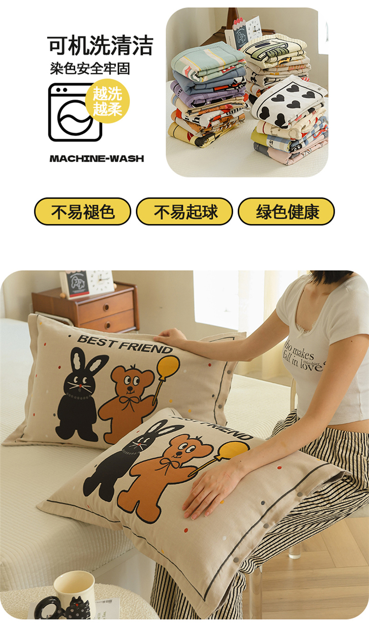 商品名称:2024新款全棉四层纱布枕套一对装纽扣款枕套 好兔友