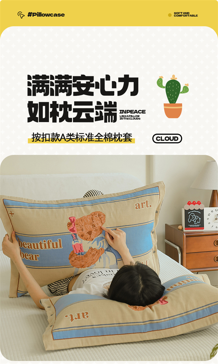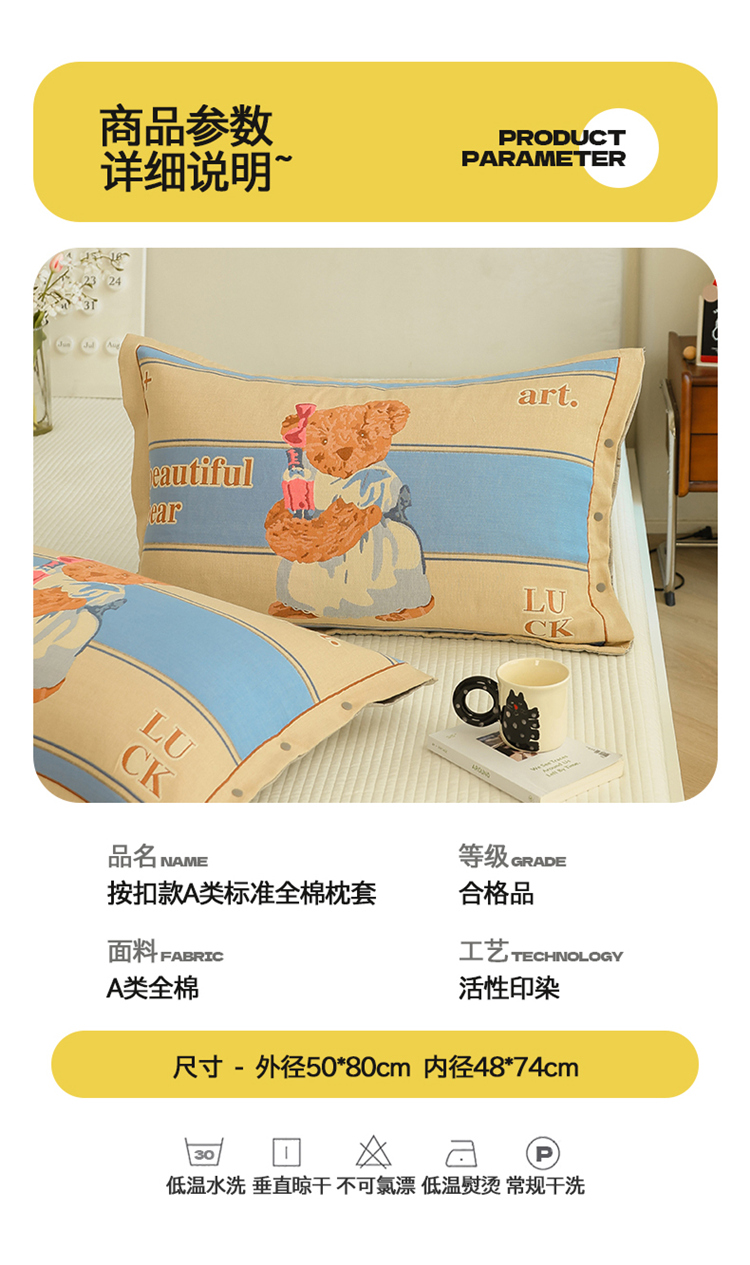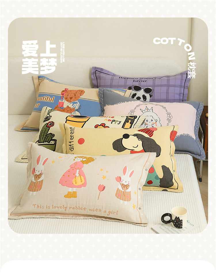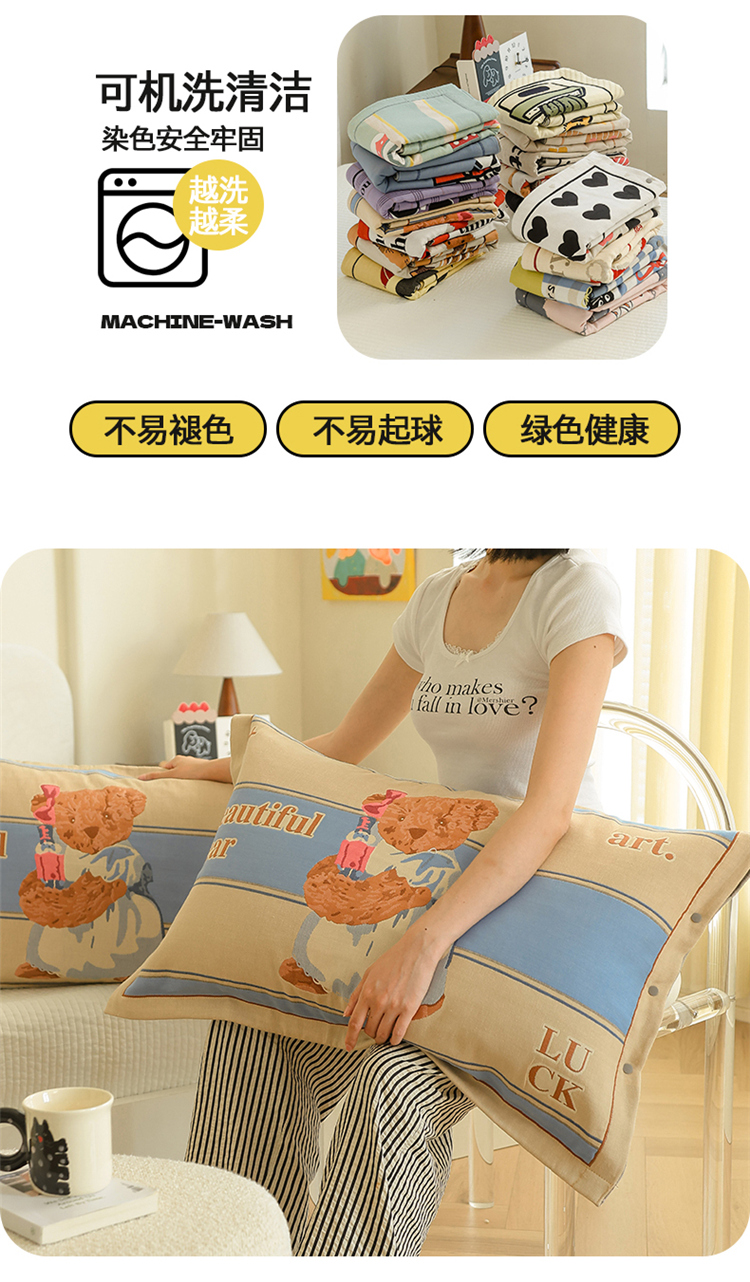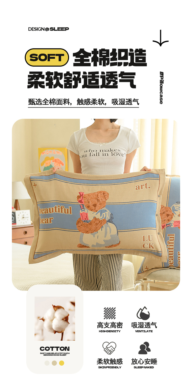 商品名称:2024新款全棉四层纱布枕套一对装纽扣款枕套 汤姆女士
