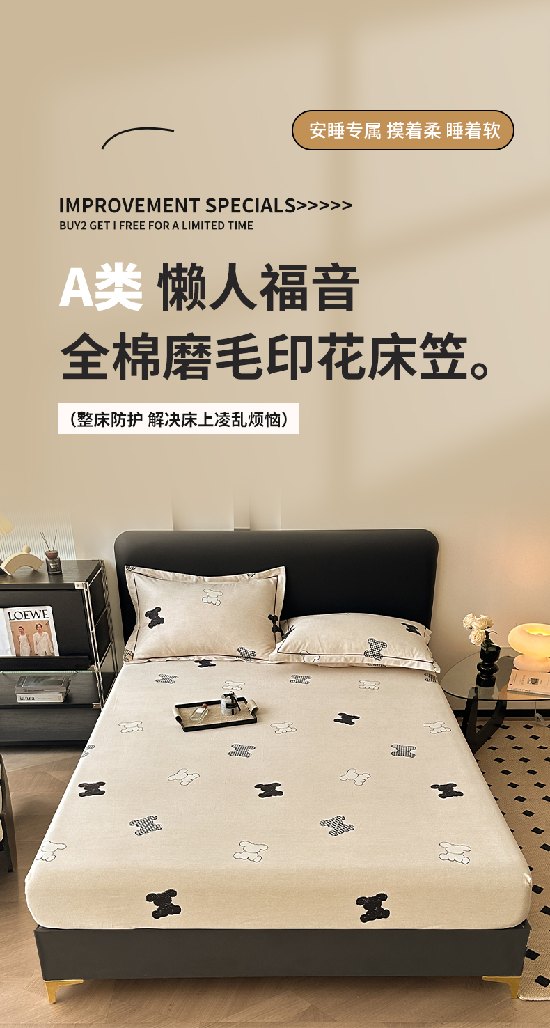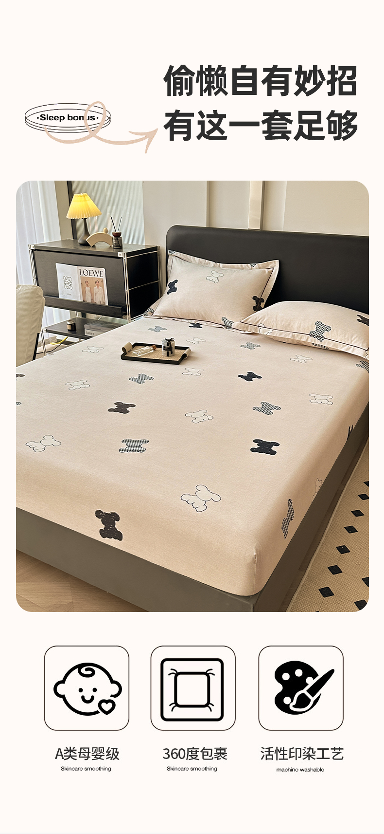 商品名称:大柏树 2025新款A类全棉磨毛印花单床笠 喜饰米