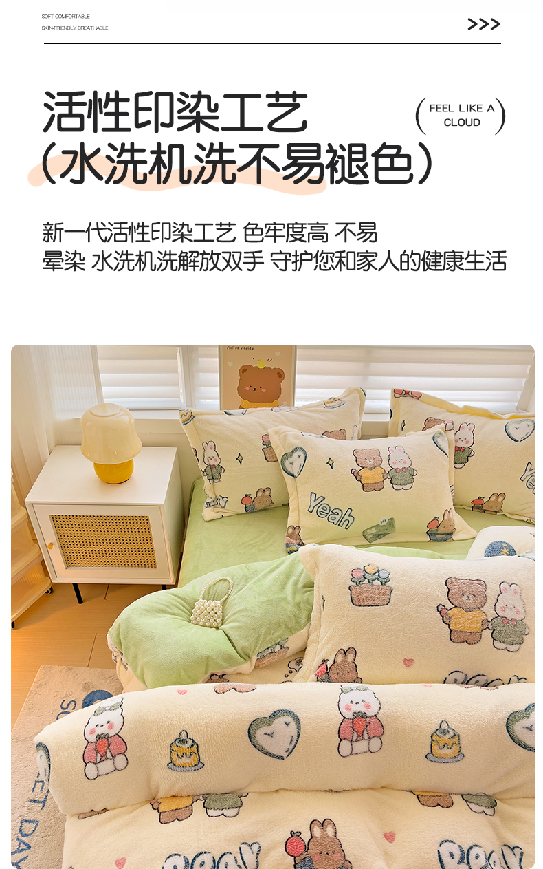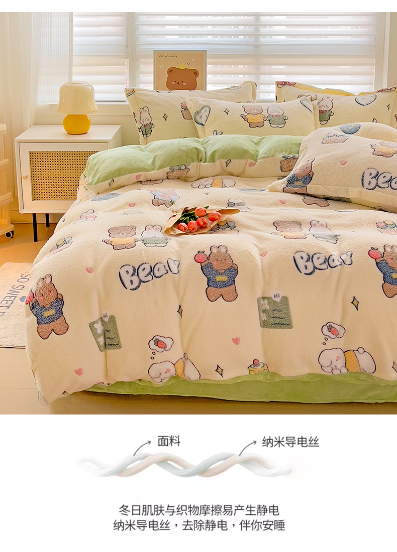 当前位置: 91家纺网 > 商品网购 > 床品套件 > 四件套 > 其它四件套 > 2024新款加厚雪花绒印花四件套-风格二(提供卖家秀) 快乐心情