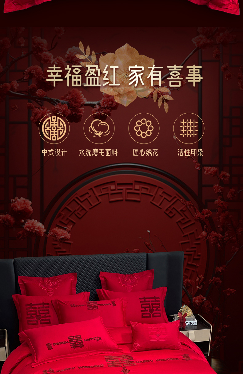 (总)芊囍纺 2025新款新中式亲肤加厚磨毛刺绣婚庆四件套多件套,欢天喜地,今生有你,多子多福,前程似锦