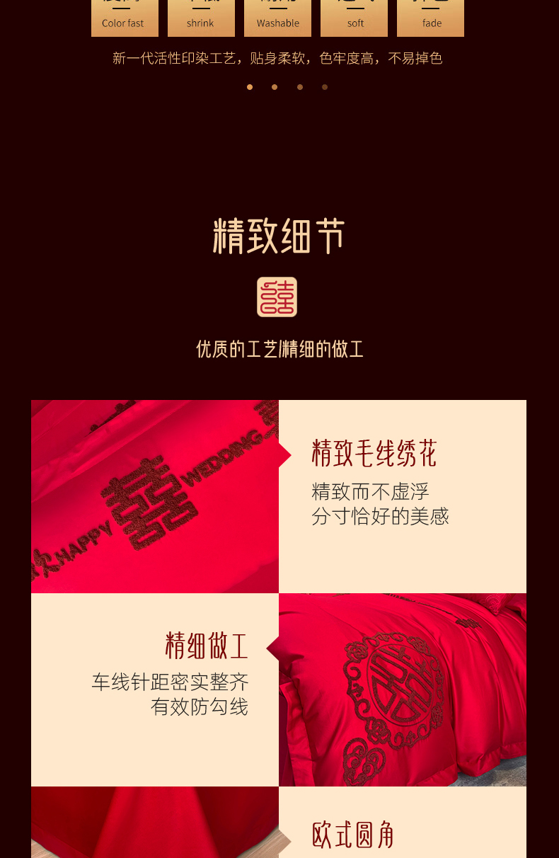 商品名称:芊囍纺 2024新款亲肤磨毛婚庆刺绣四件套 喜临门
