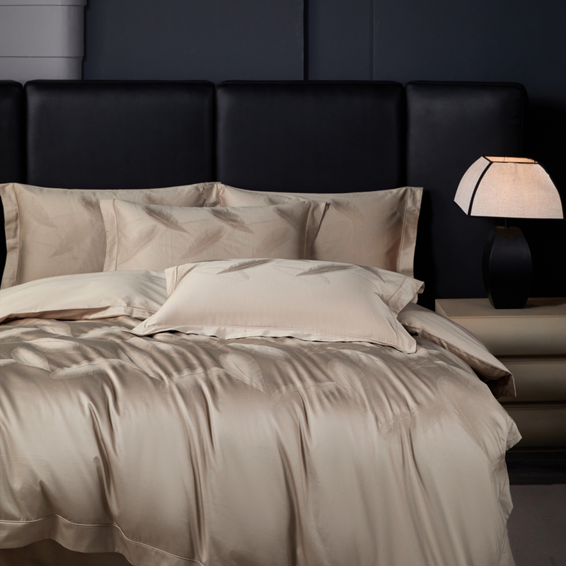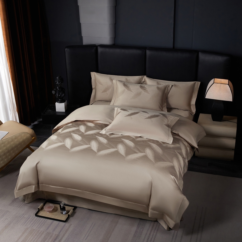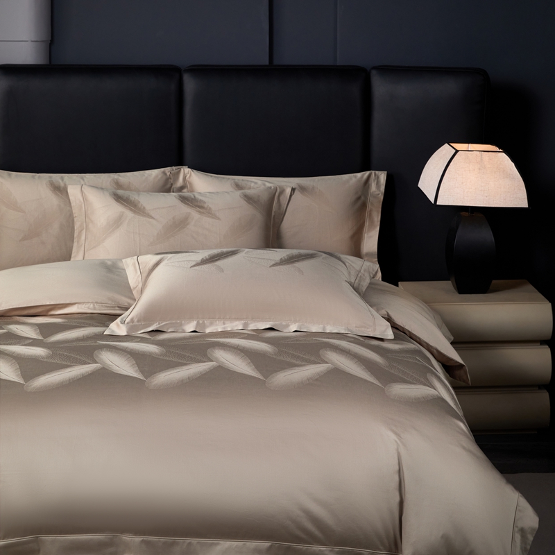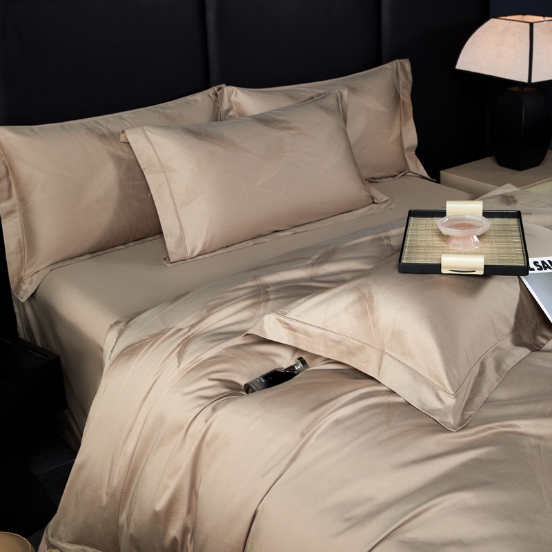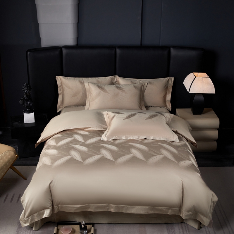 商品名称:淳绵家居 2024新款50*50S双股长绒棉大版定位提花四件套 格拉菲-香槟色