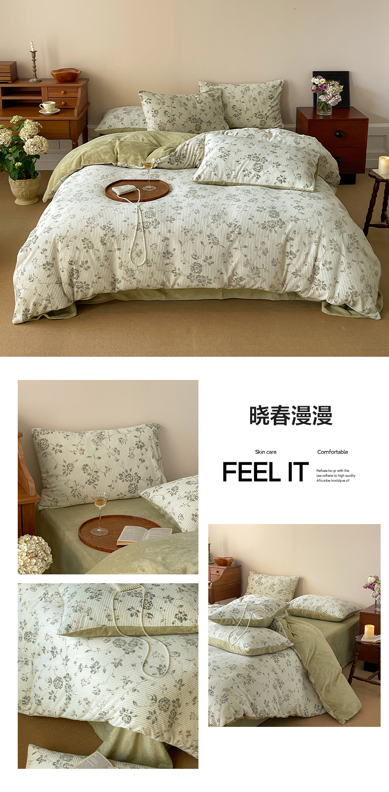 商品名称:三味舒屋 2025新款肌理印加提牛奶绒四件套-清雅 风格一 晓春漫漫