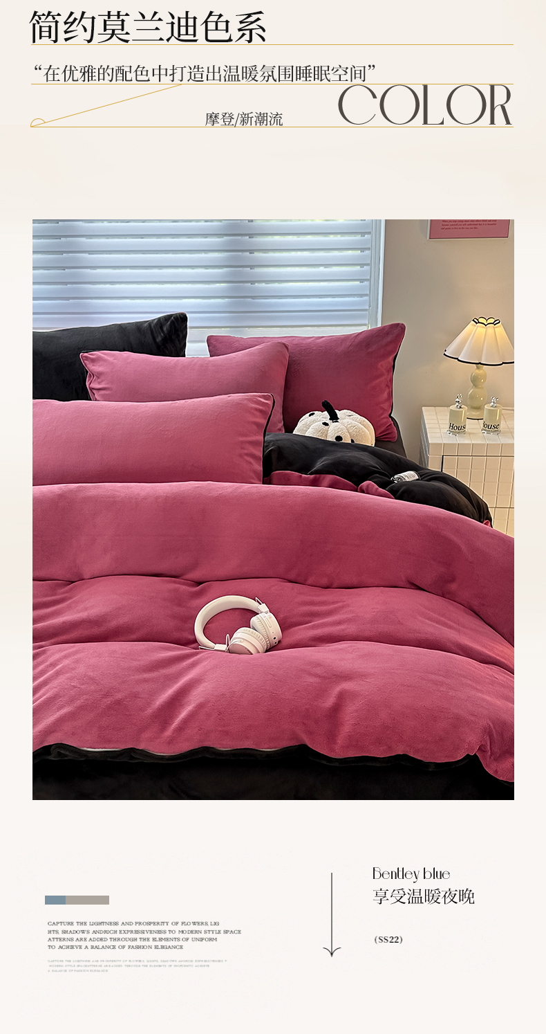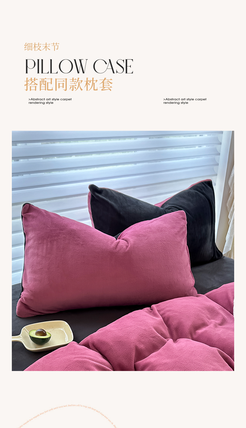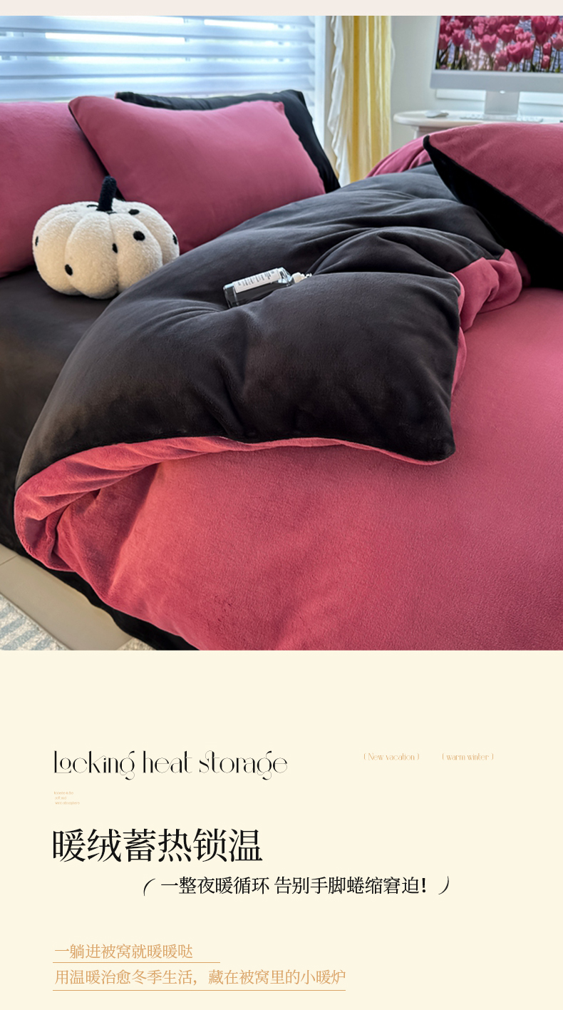 (总)觅妮家纺 2025新款纯色高克重牛奶绒四件套系列,果绿粉,宝石蓝,高级黑,卡其黑,柠檬粉,浅粉灰,深浅灰,树莓粉