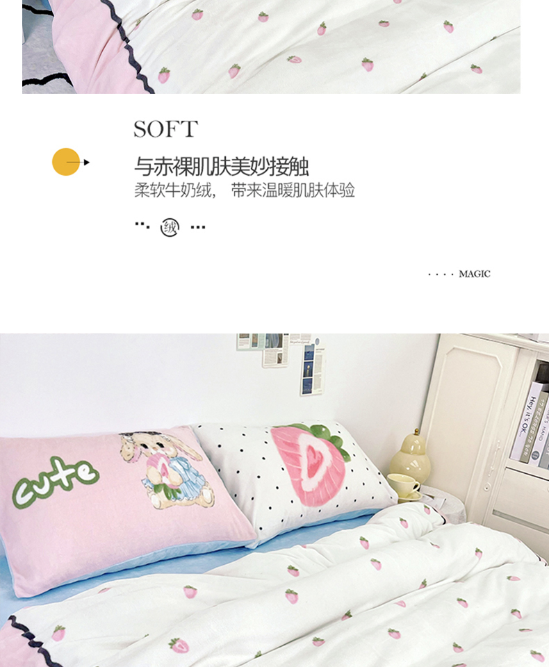 商品名称:浩诚 2024新款ins风牛奶绒印花四件套 公主小兔