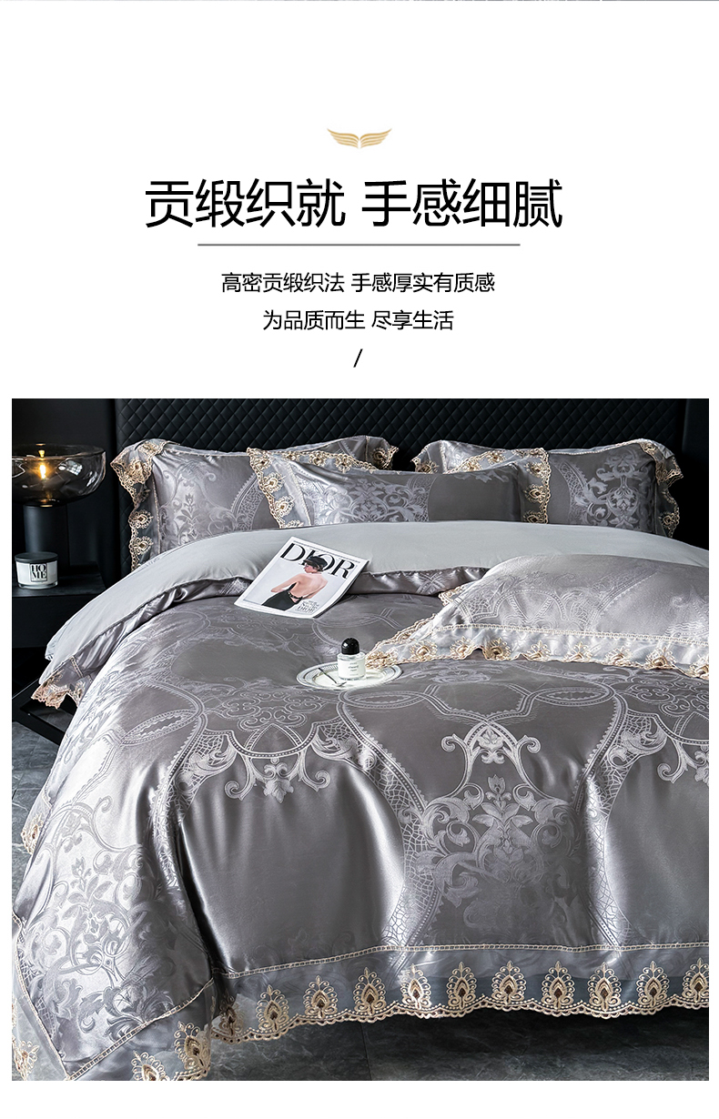 商品名称:七夜居 2025新款蕾丝花边欧式贡缎提花四件套礼盒装 本奎