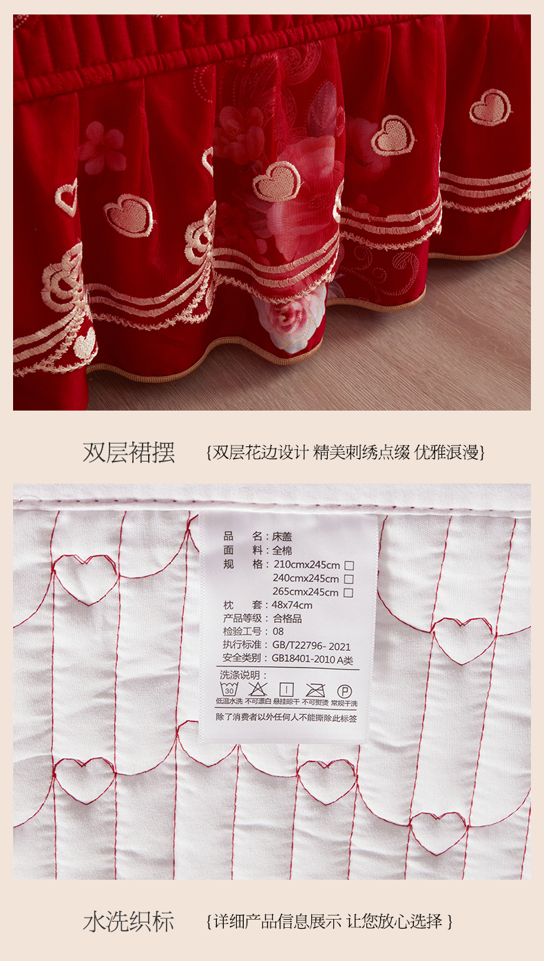 (总)宜凡家纺 2025新款婴儿绒压花全夹棉床裙四件套,韵雅-中国红,韵雅-黑天鹅