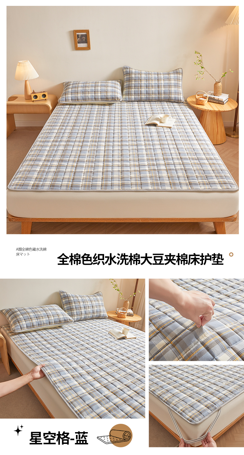 商品名称:伊人坊 2024新款全棉色织水洗棉床护垫 星空格-蓝