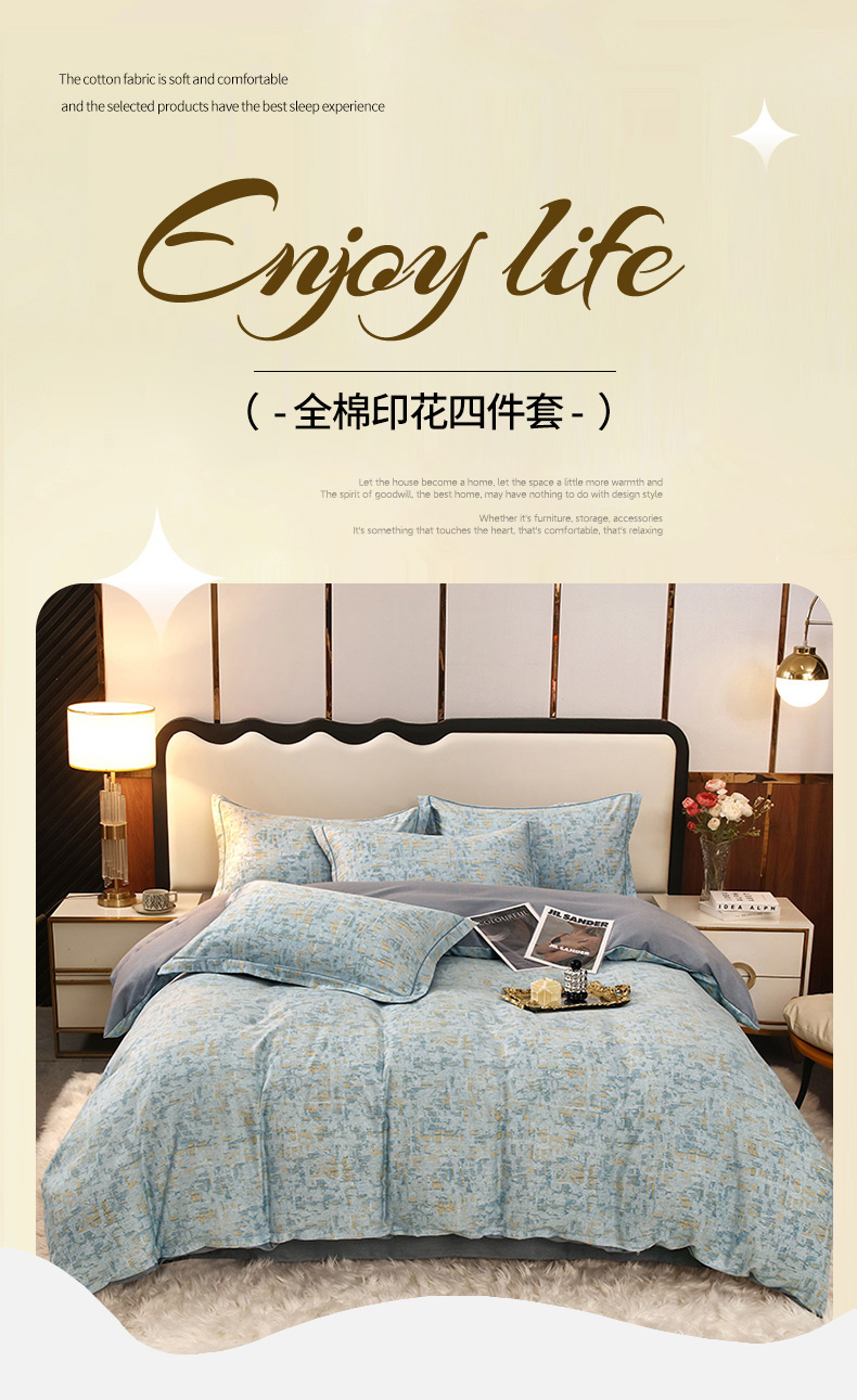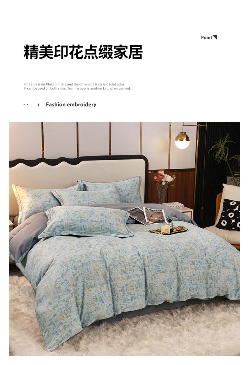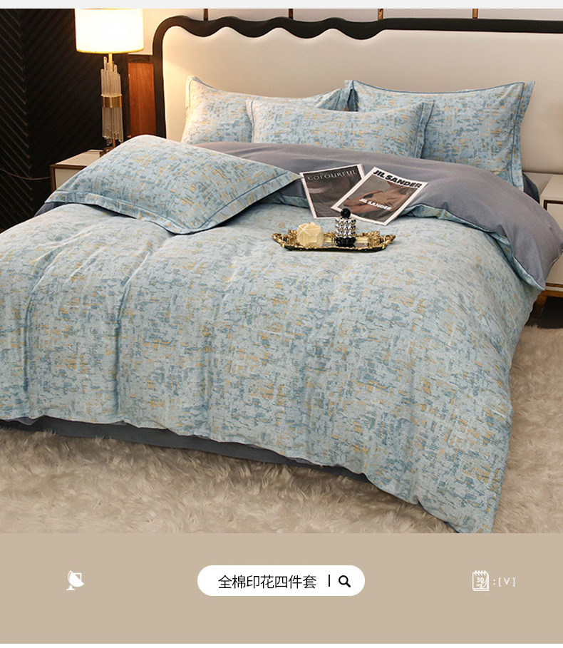 商品名称:金纱玉纺 2024新款全棉印花加厚磨毛四件套 米莱-兰