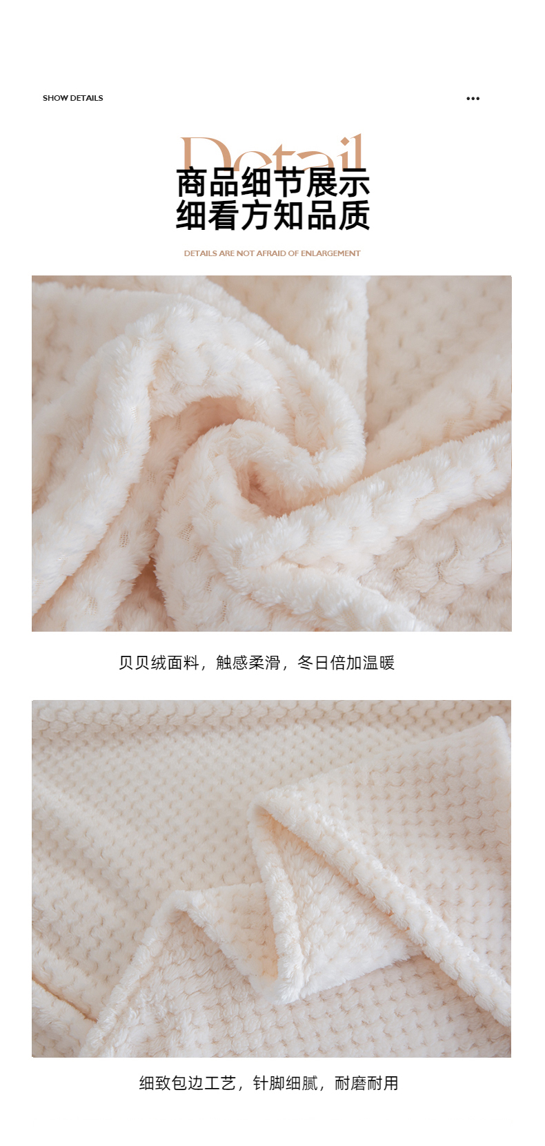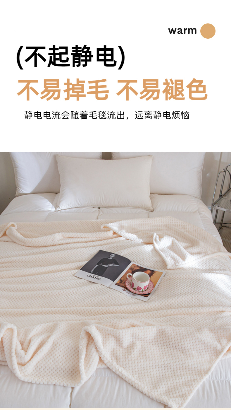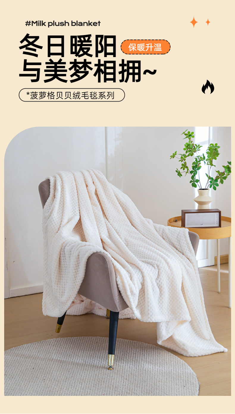 商品名称:卡琪曼 2024新款保暖菠萝格贝贝绒毛毯毯子 奶昔白